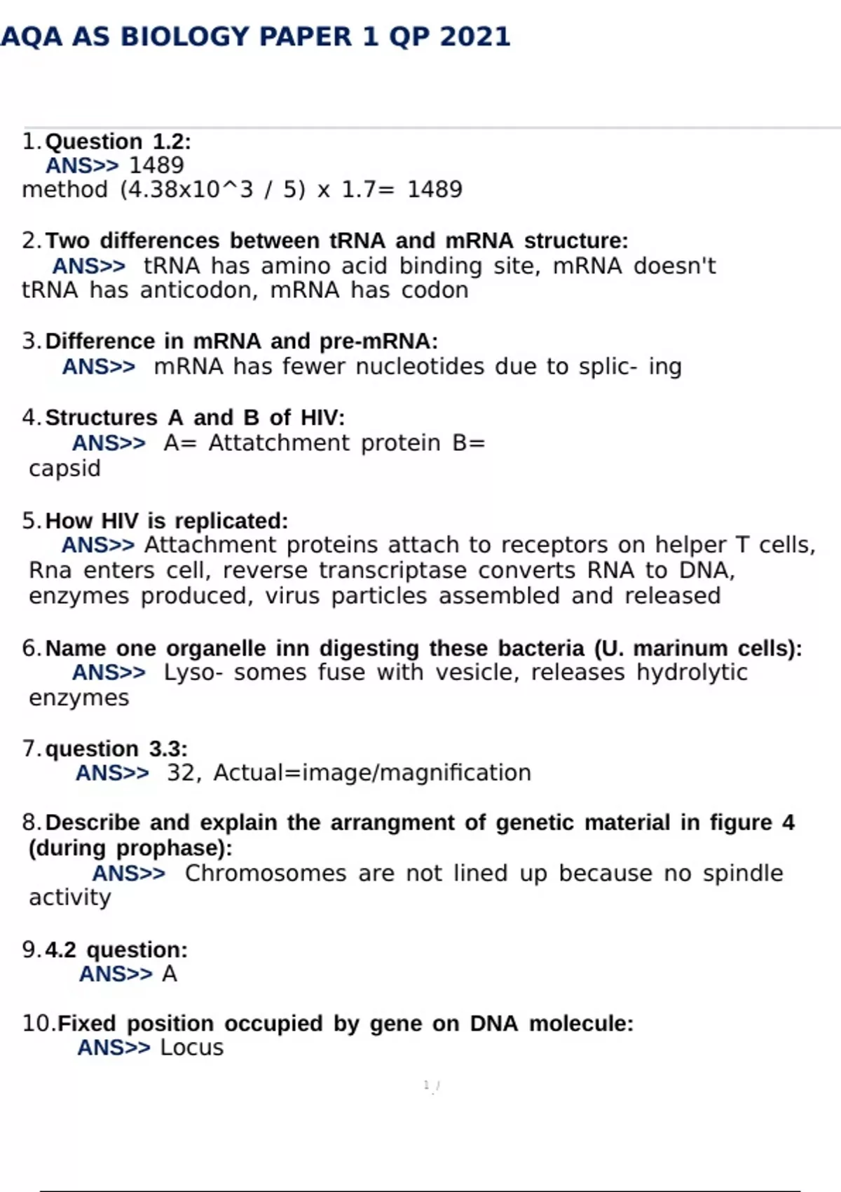 AQA AS BIOLOGY PAPER 1 QP 2021