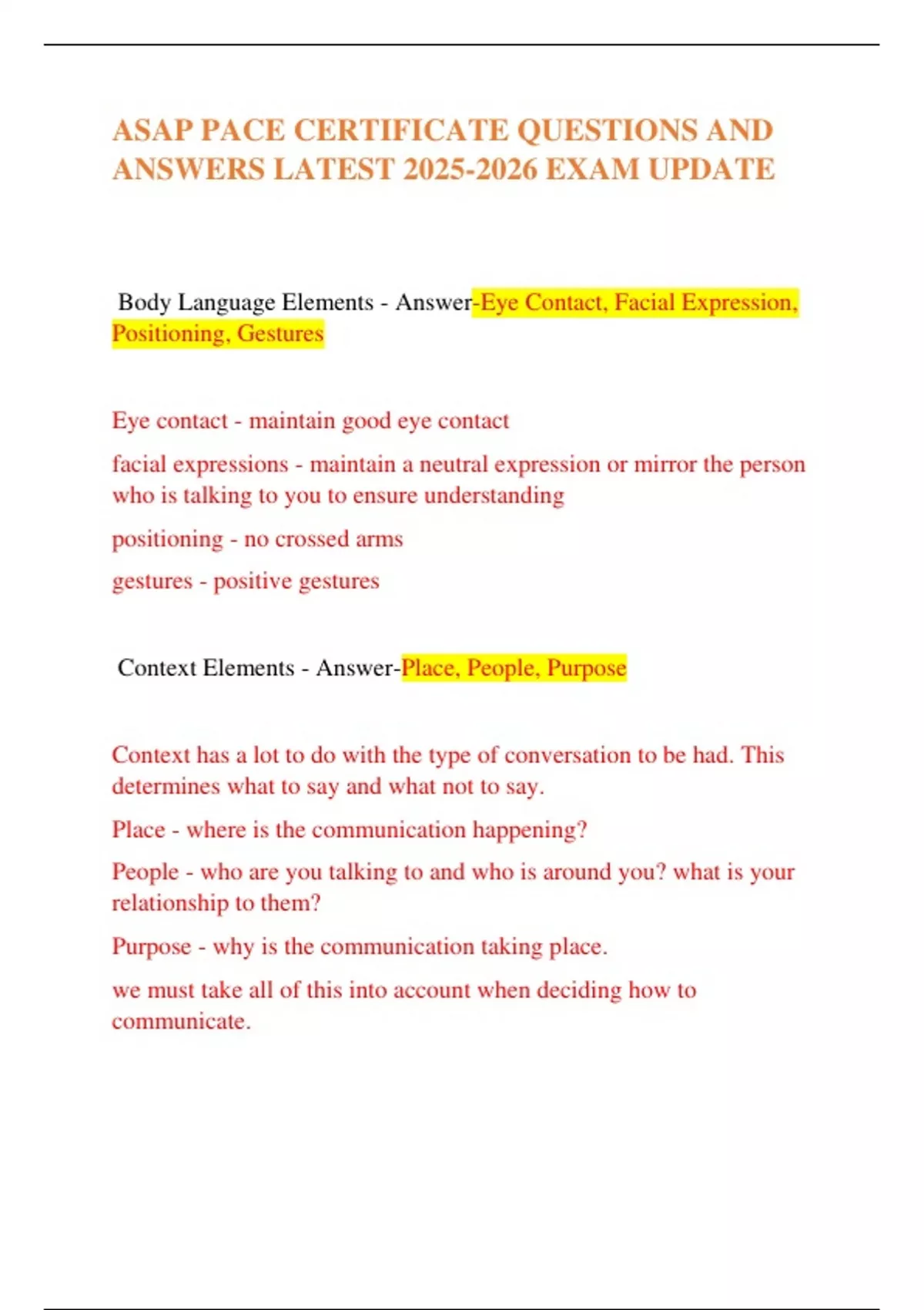 ASAP PACE CERTIFICATE QUESTIONS AND ANSWERS LATEST EXAM UPDATE