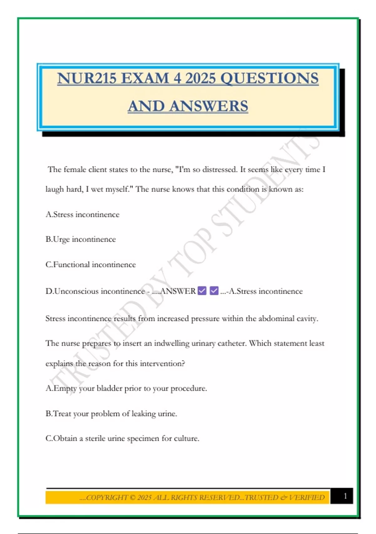 NUR215 EXAM 4 2025 QUESTIONS AND ANSWERS