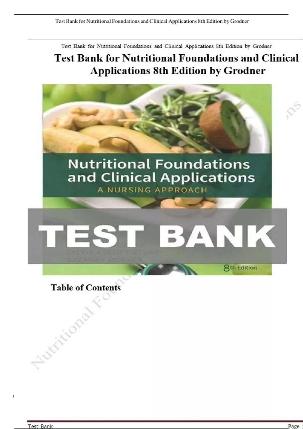 , Test Bank for Nutritional Foundations and Clinical Applications 8th Edition by Grodner