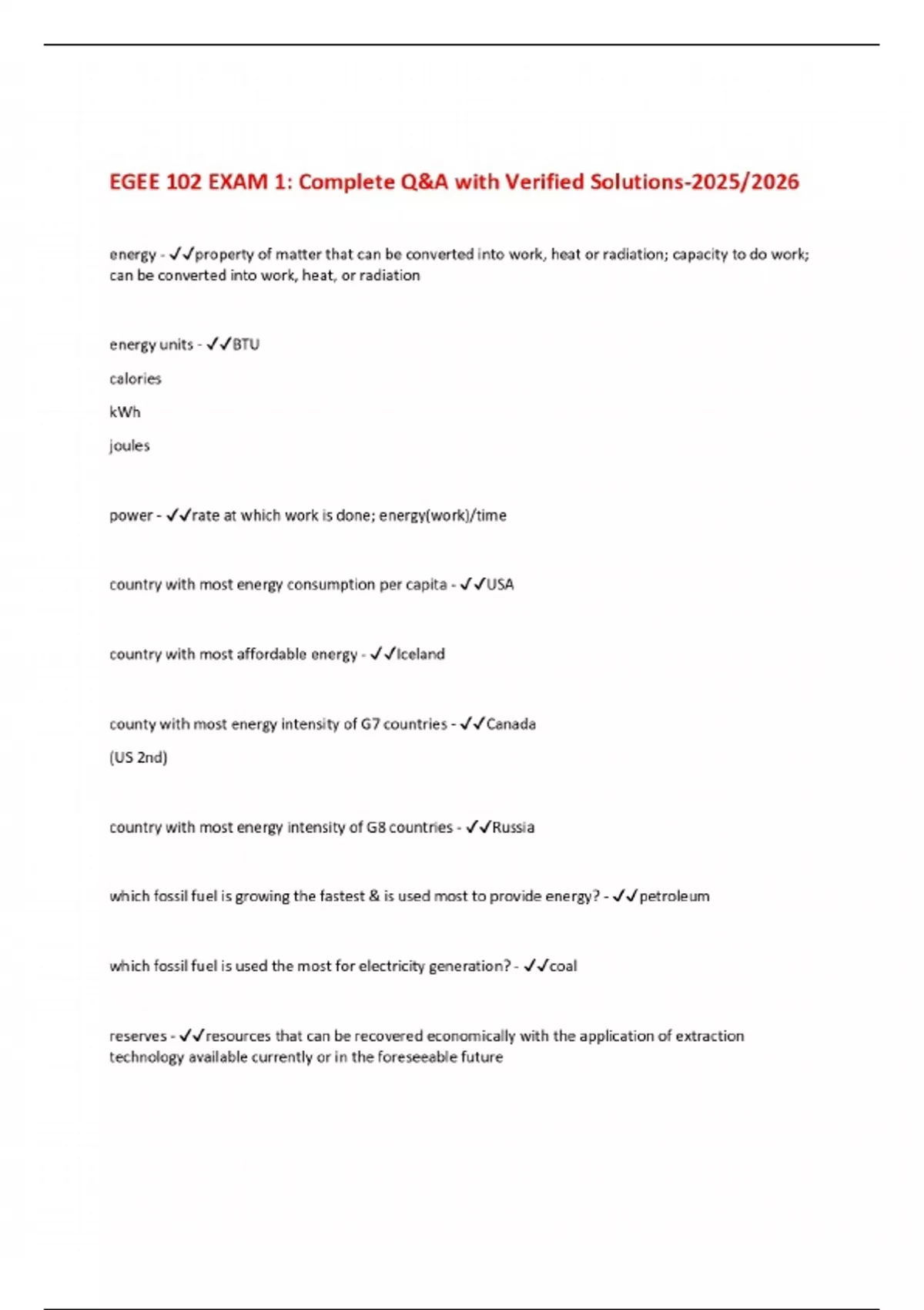 EGEE 102 EXAM 1: Complete Q&A with Verified Solutions-2025/2026