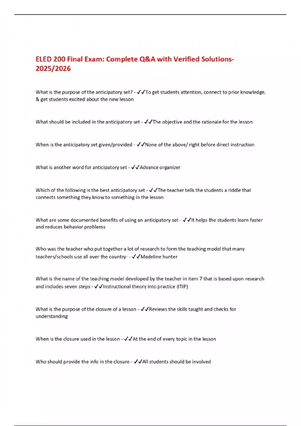 ELED 200 Final Exam: Complete Q&A with Verified Solutions 2025/2026