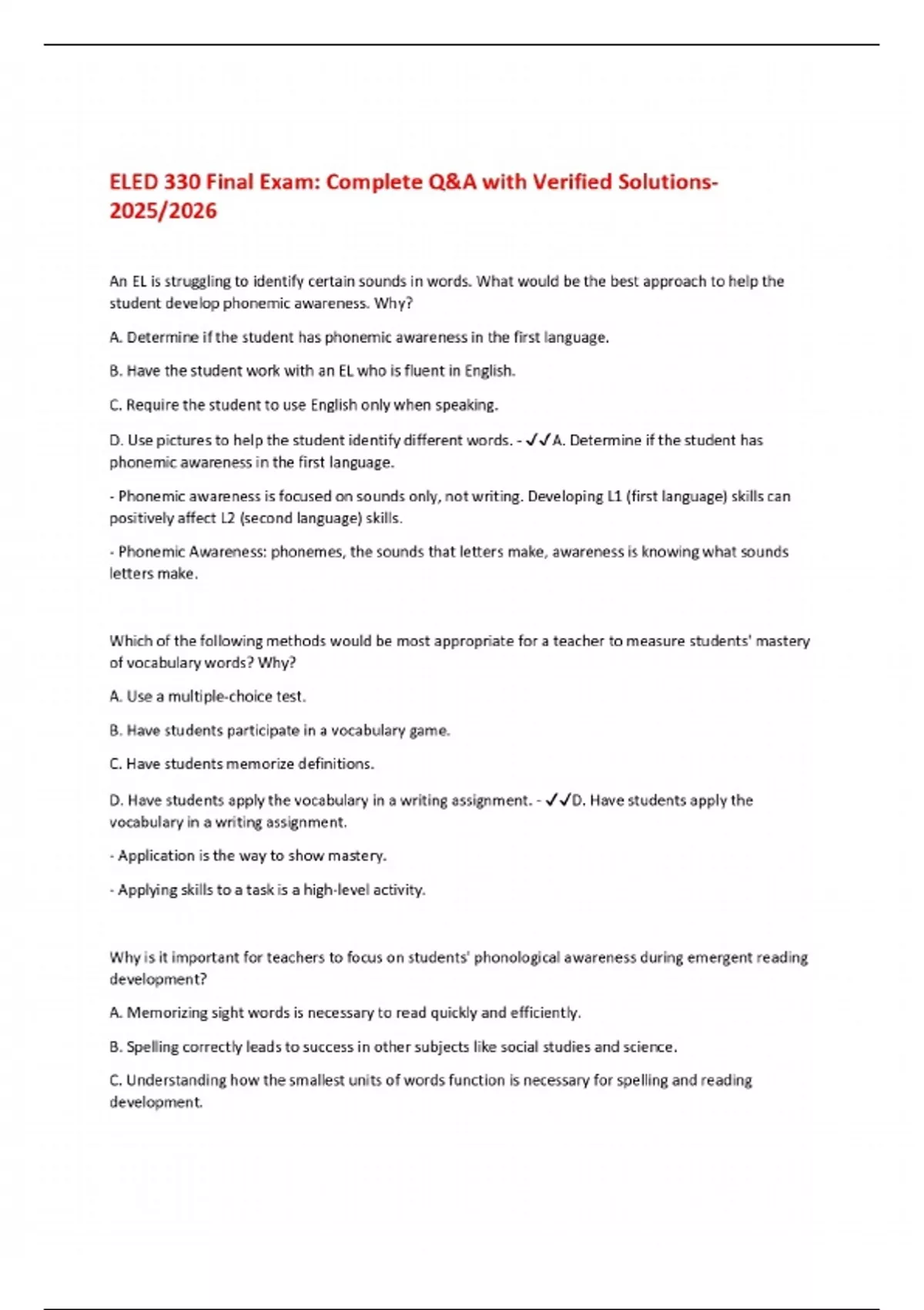 ELED 330 Final Exam: Complete Q&A with Verified Solutions 2025/2026