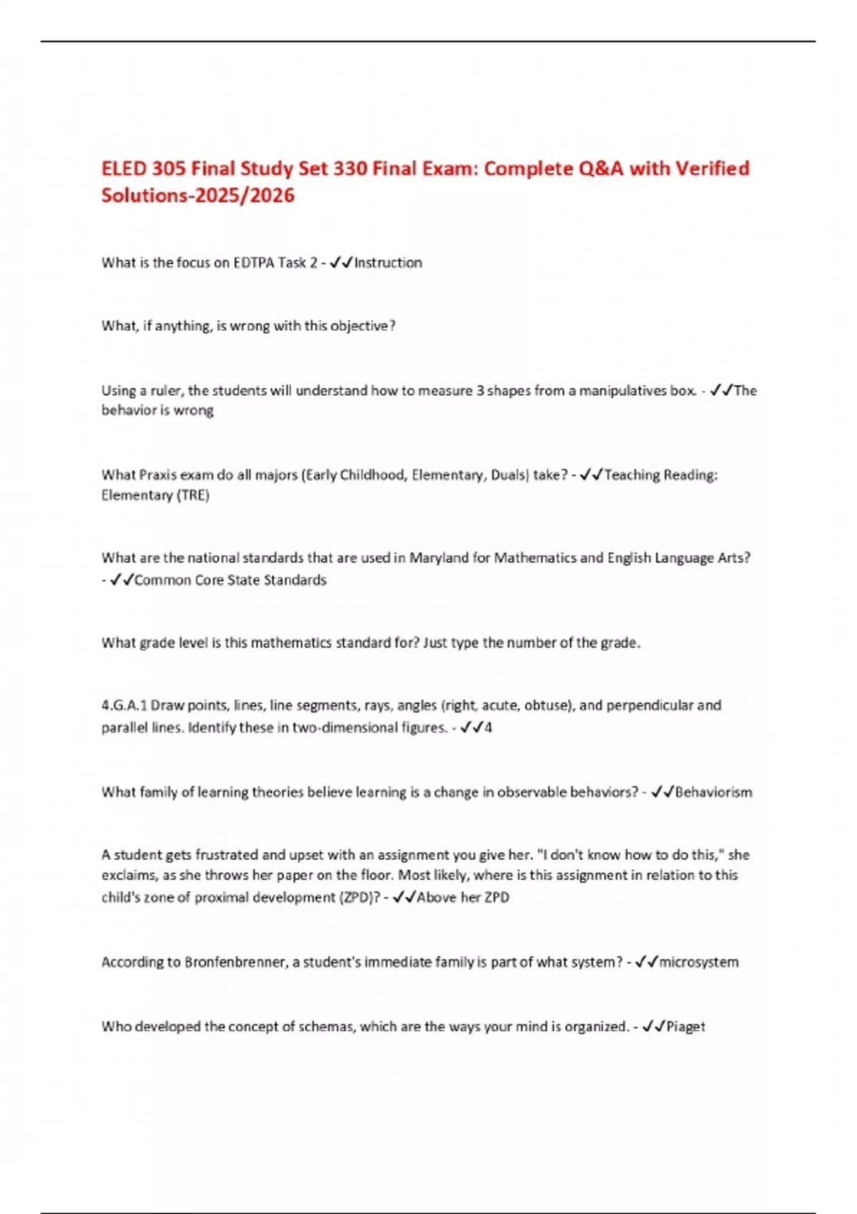 ELED 305 Final Study Set 330 Final Exam: Complete Q&A with Verified Solutions-2025/2026