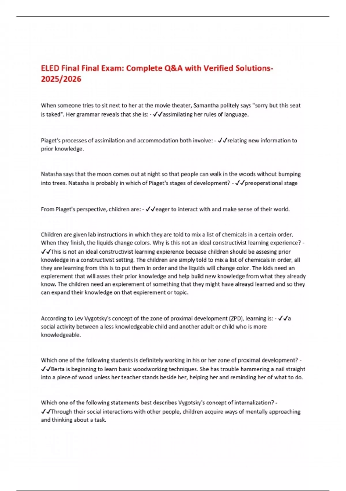 ELED Final Final Exam: Complete Q&A with Verified Solutions 2025/2026