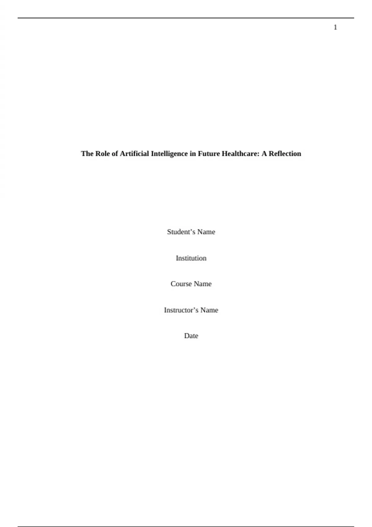 The Role of Artificial Intelligence in Future Healthcare: A Reflection