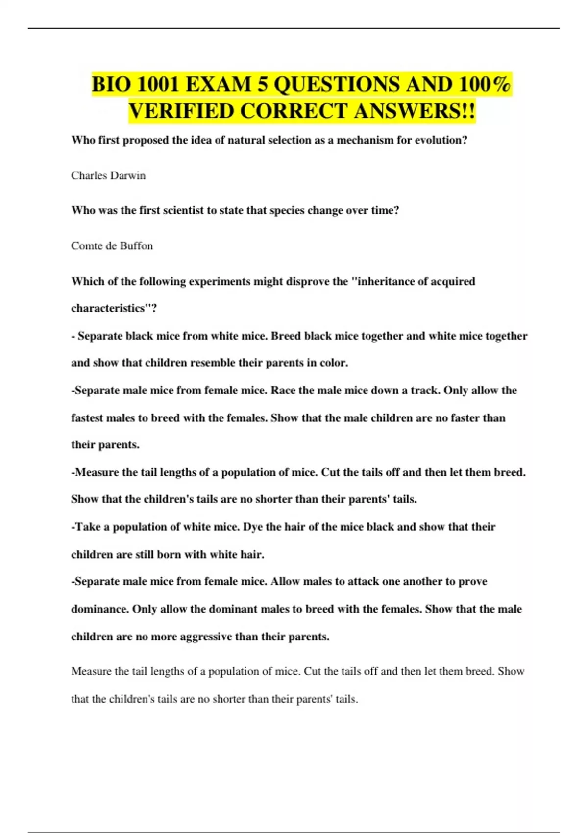BIO 1001 EXAM 5 QUESTIONS AND 100% VERIFIED CORRECT ANSWERS!!
