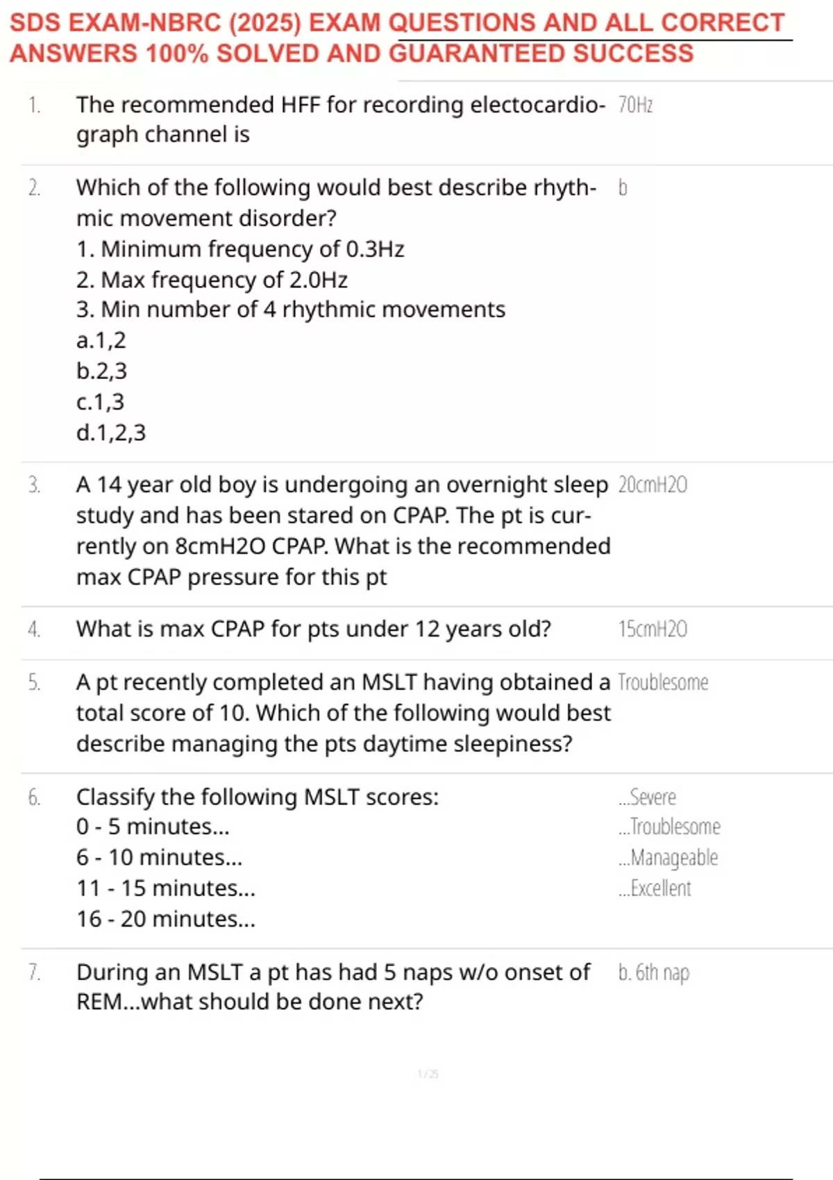 SDS EXAM-NBRC (2025) EXAM QUESTIONS AND ALL CORRECT