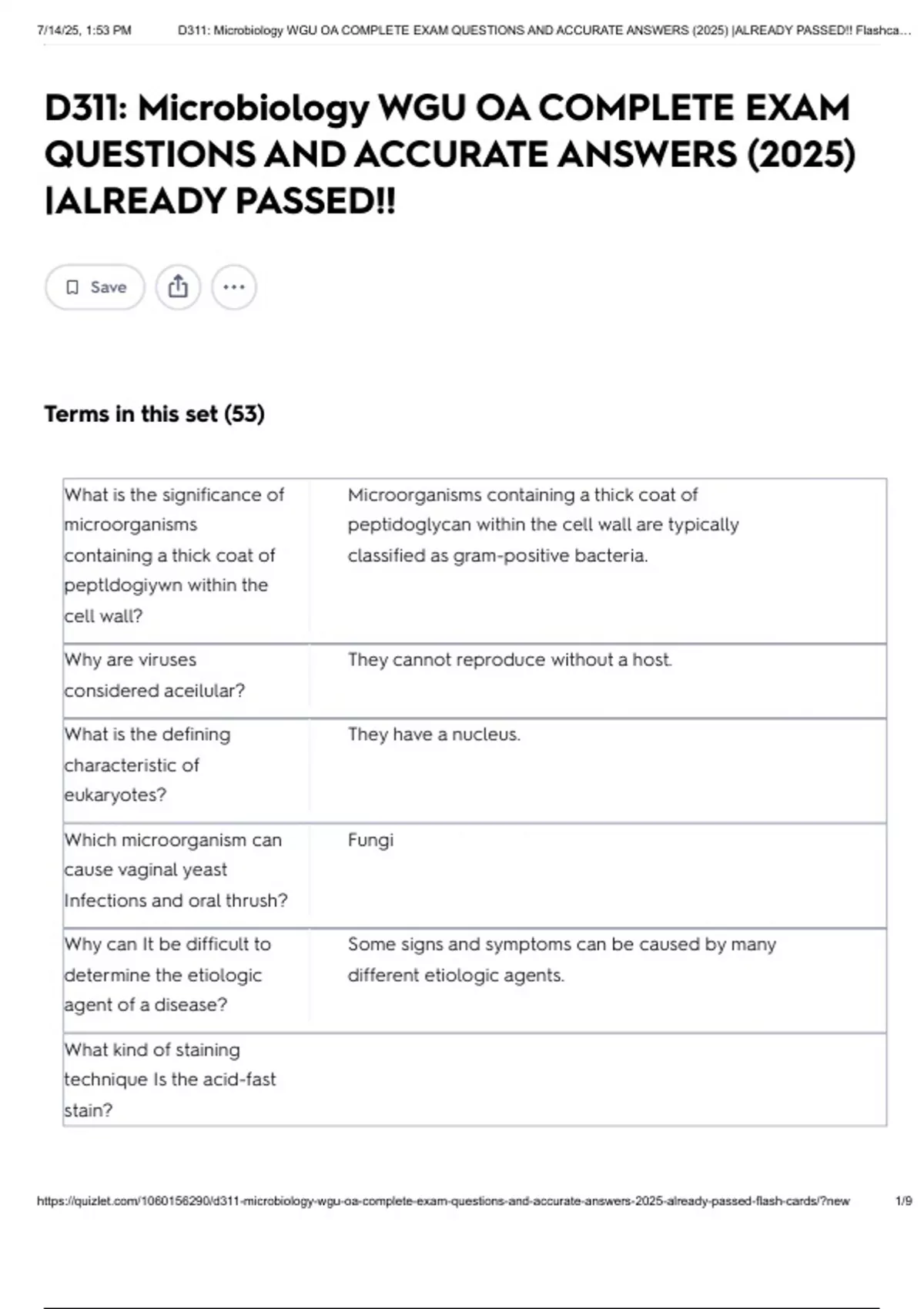 , 7/14/25, 1:53 PM D311: Microbiology WGU OA COMPLETE EXAM QUESTIONS AND ACCURATE ANSWERS (2025) |ALREADY PASSED!! Flashca…