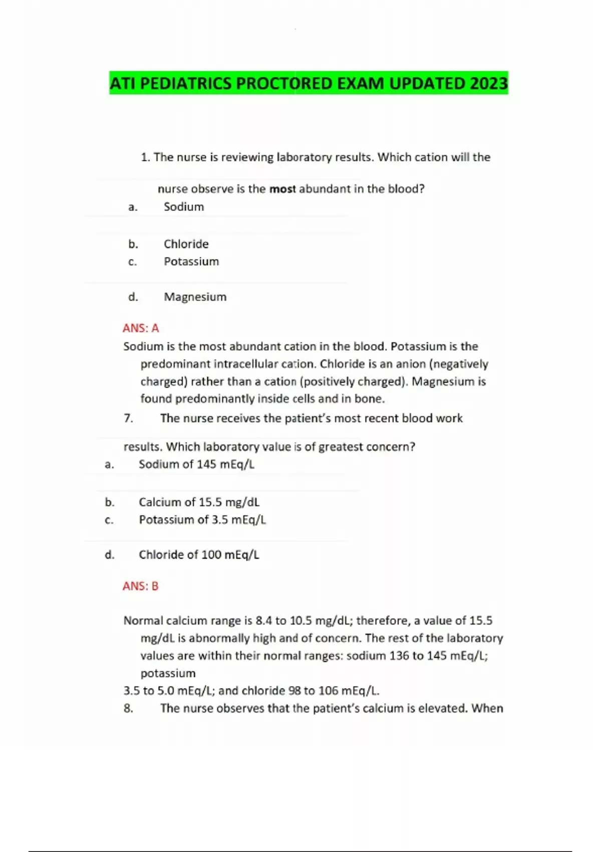 Ati pediatrics proctored exam updated 2025Ati pediatrics proctored exam updated 2025Ati pediatrics proctored exam updated 2025