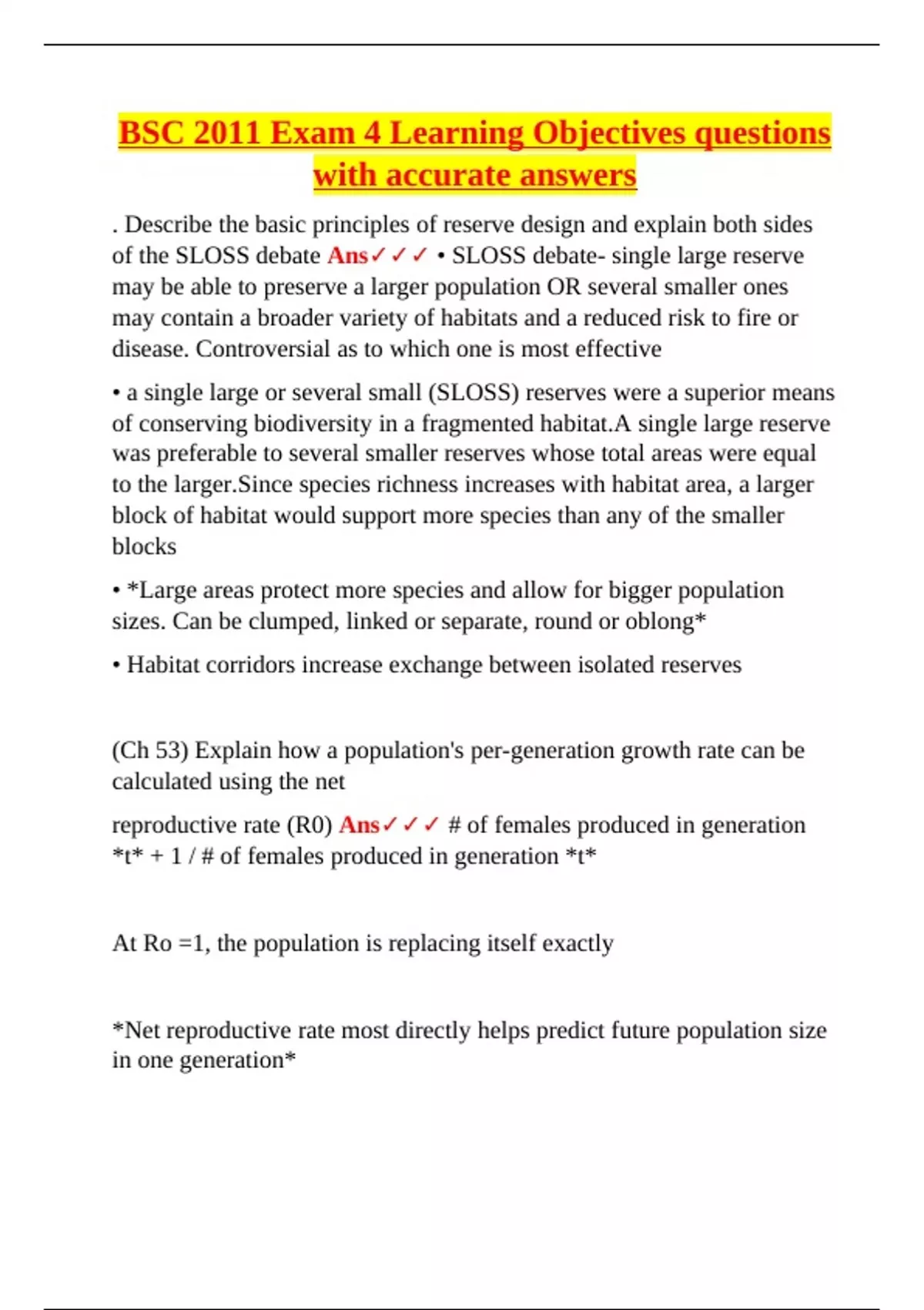 reproductive rate (R0) Ans✓✓✓ # of females produced in generation