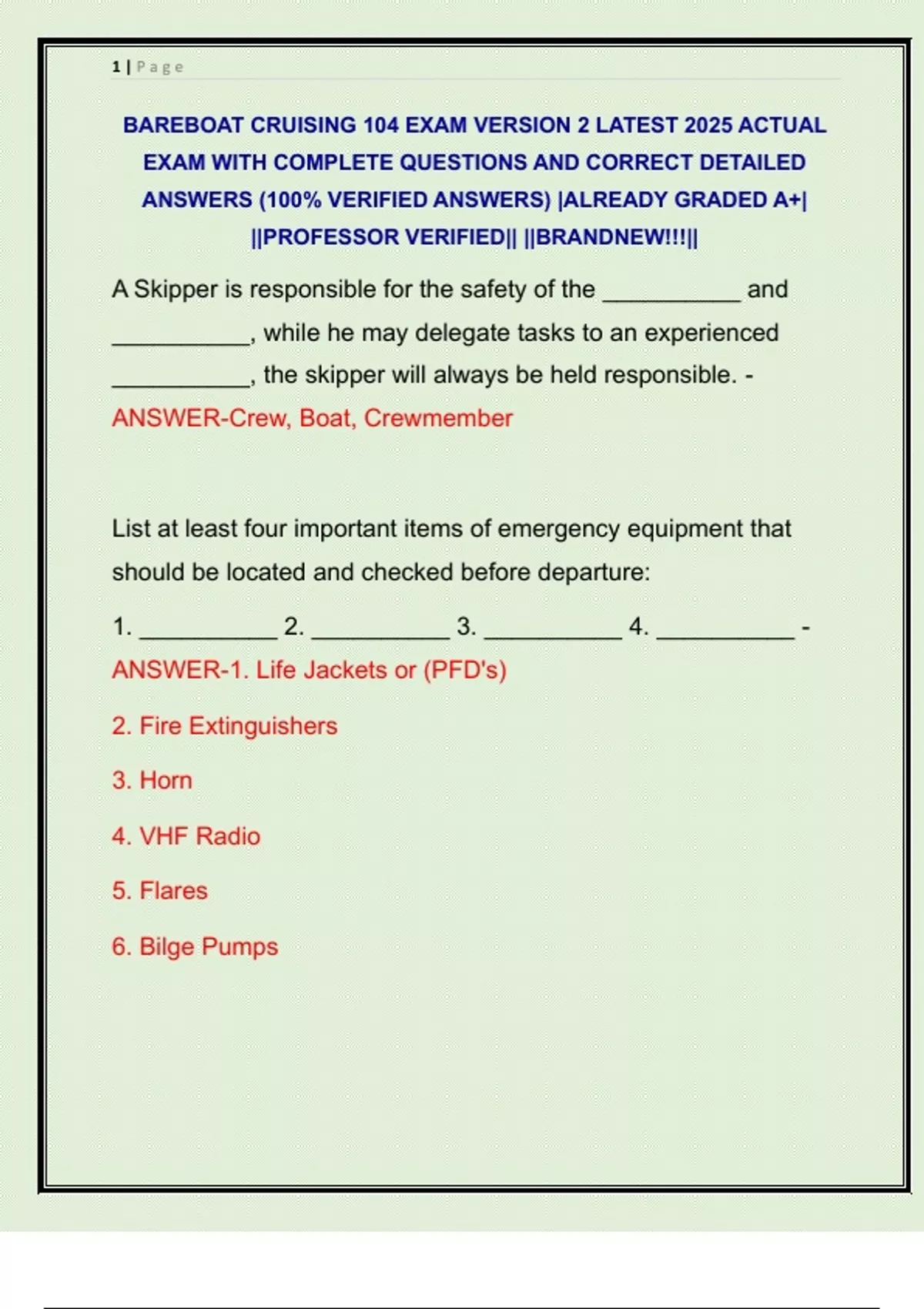 BAREBOAT CRUISING 104 EXAM VERSION 2 LATEST 2025 ACTUAL