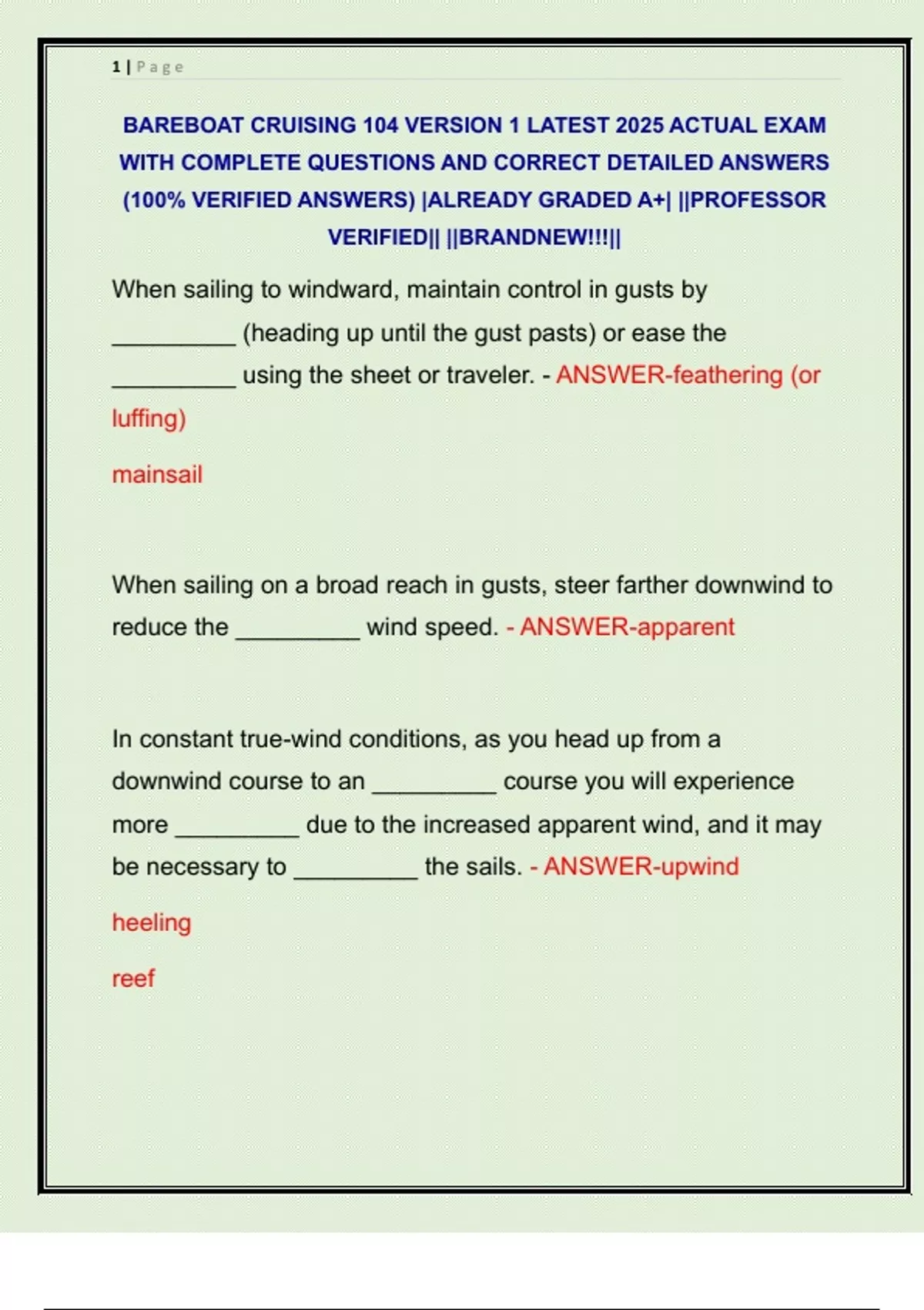 BAREBOAT CRUISING 104 VERSION 1 LATEST 2025 ACTUAL EXAM