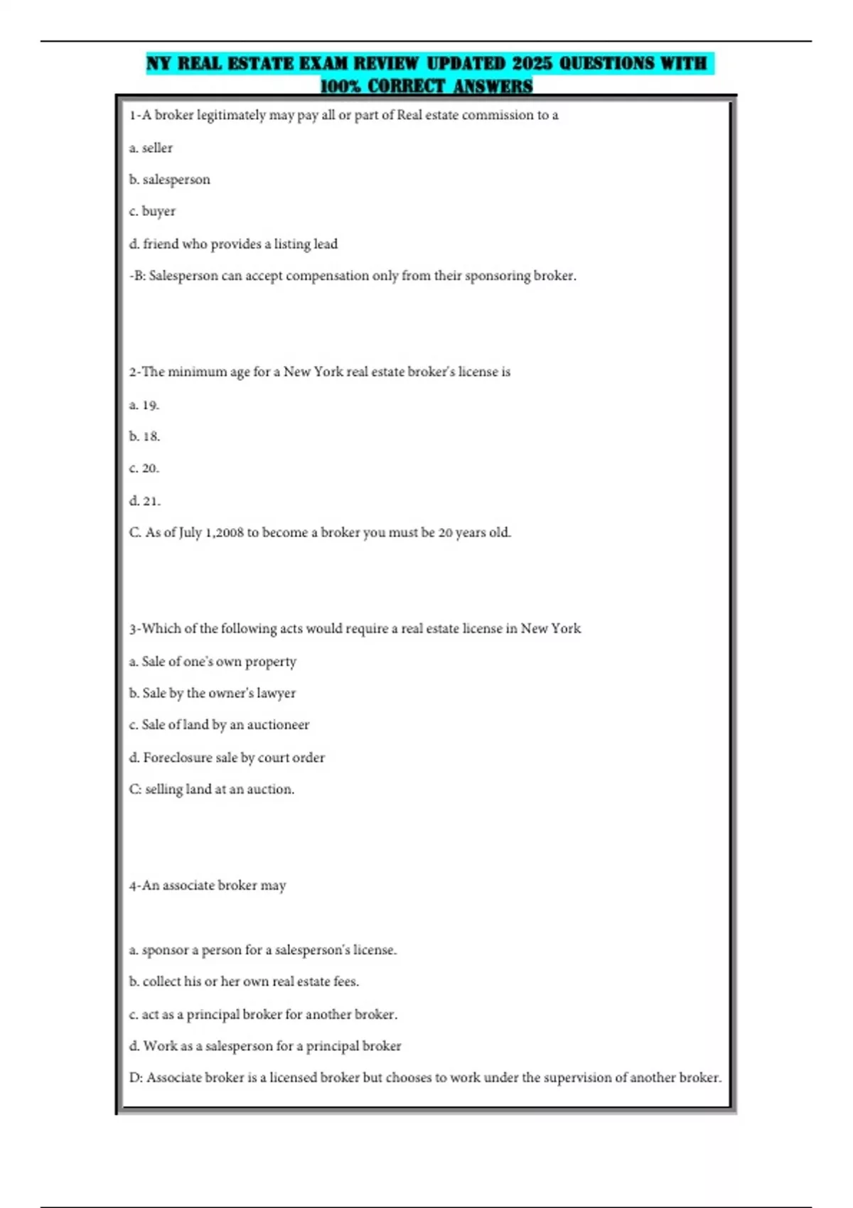 2-The minimum age for a New York real estate broker's license is