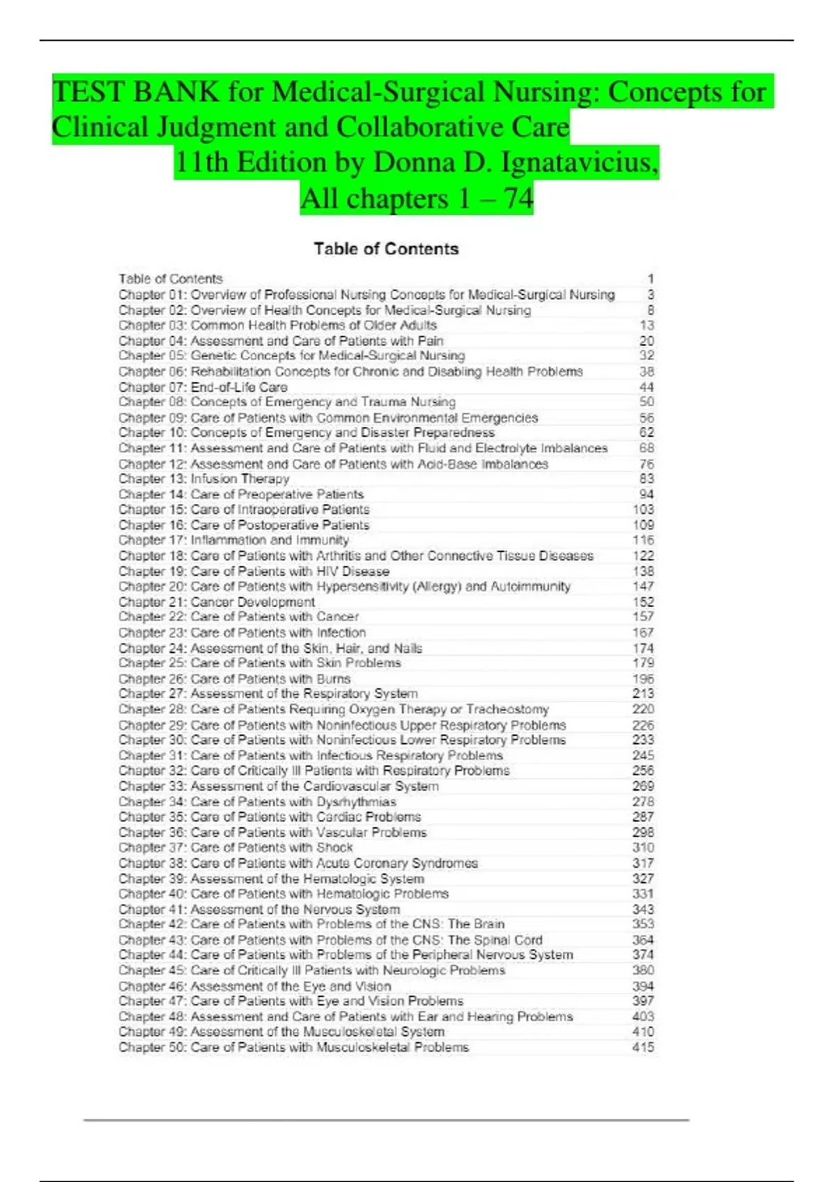 TEST BANK for Medical-Surgical Nursing: Concepts for
