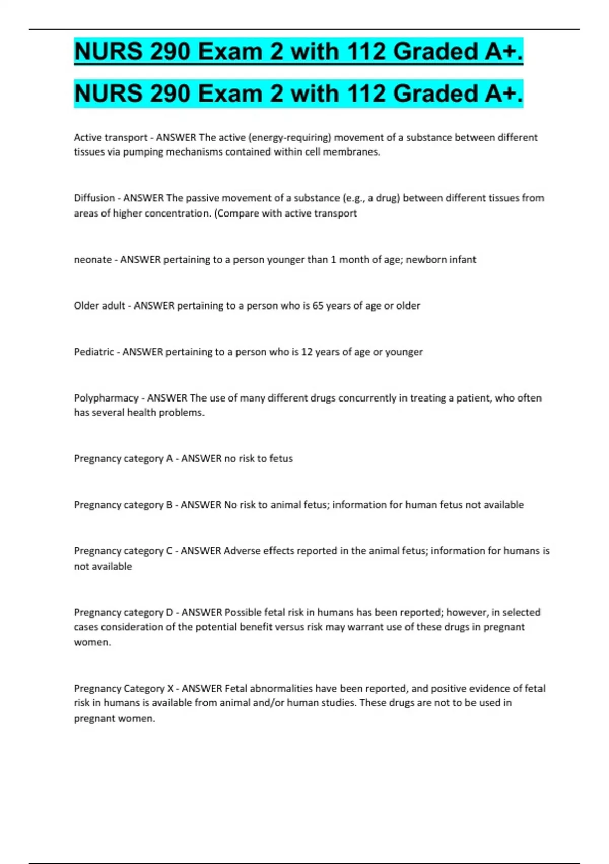 Older adult - ANSWER pertaining to a person who is 65 years of age or older