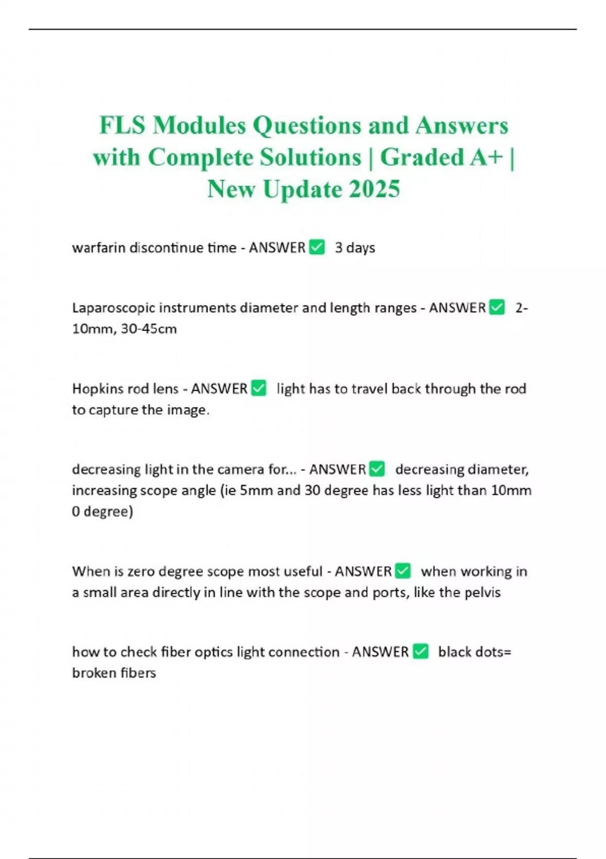 FLS (Fundamentals of Laparoscopic Surgery) BUNDLED Questions and Answers with Complete Solutions 100% Correct | New Update 2025