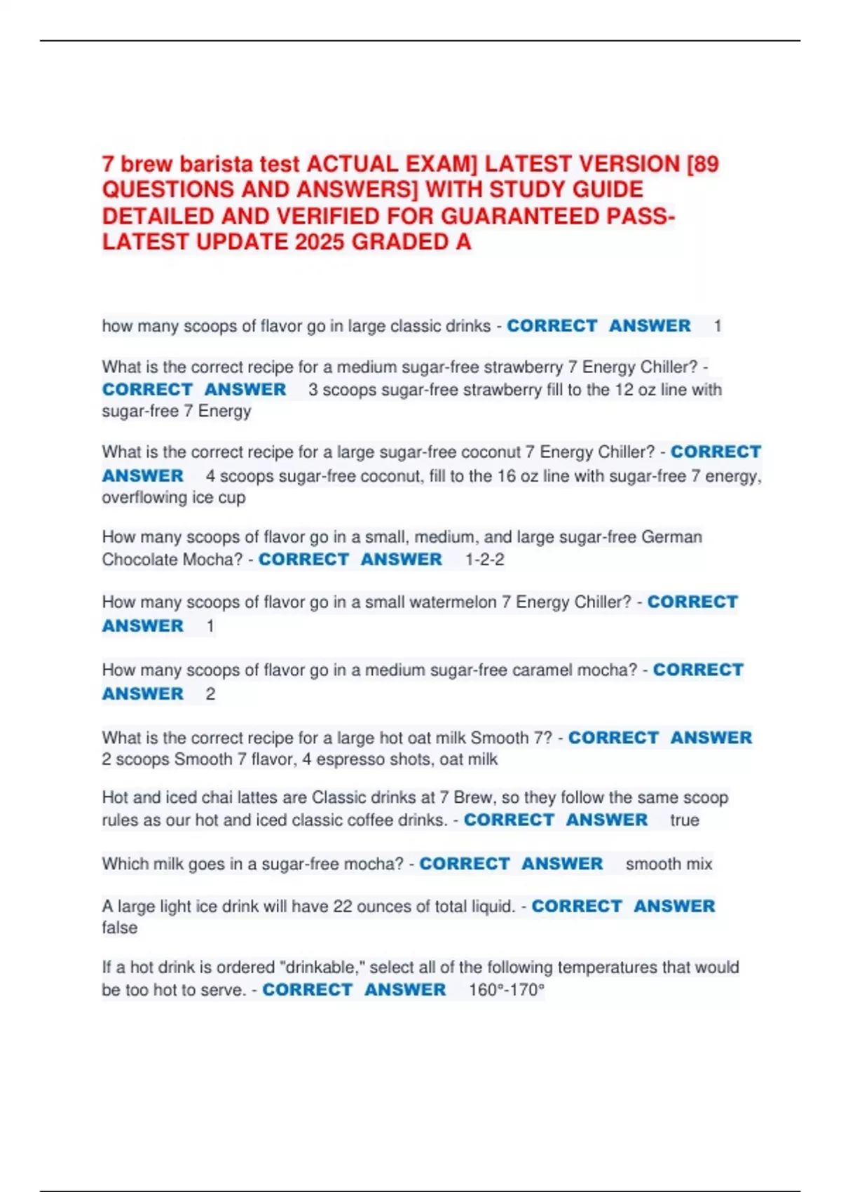 rules as our hot and iced classic coffee drinks. - CORRECT ANSWER true