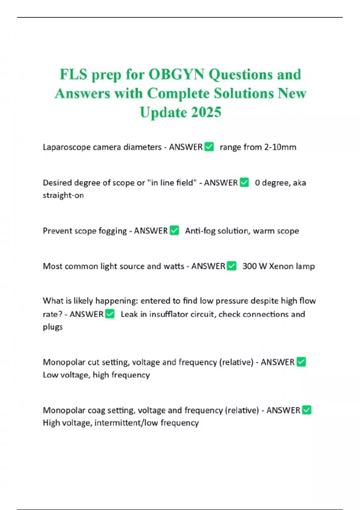 FLS prep for OBGYN Questions and Answers with Complete Solutions New Update 2025