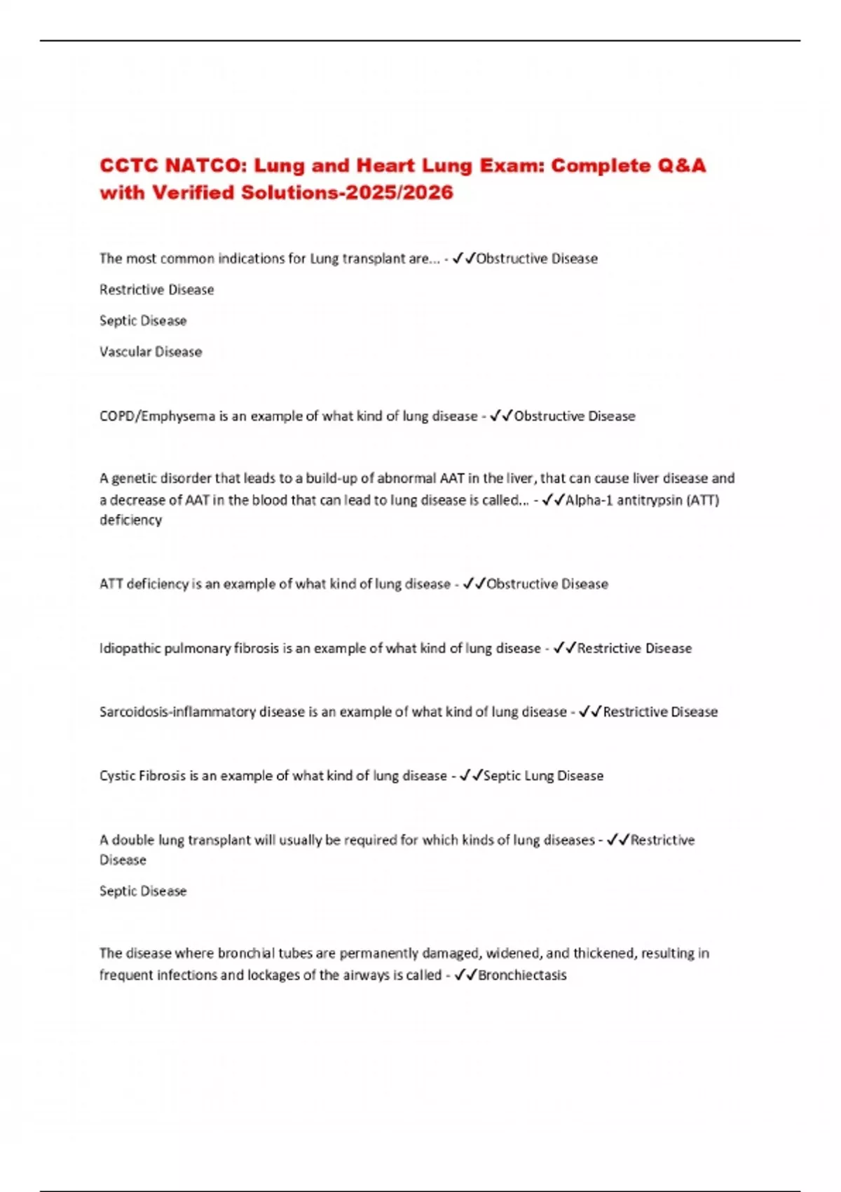 CCTC NATCO: Lung and Heart Lung Exam: Complete Q&A with Verified Solutions-2025/2026