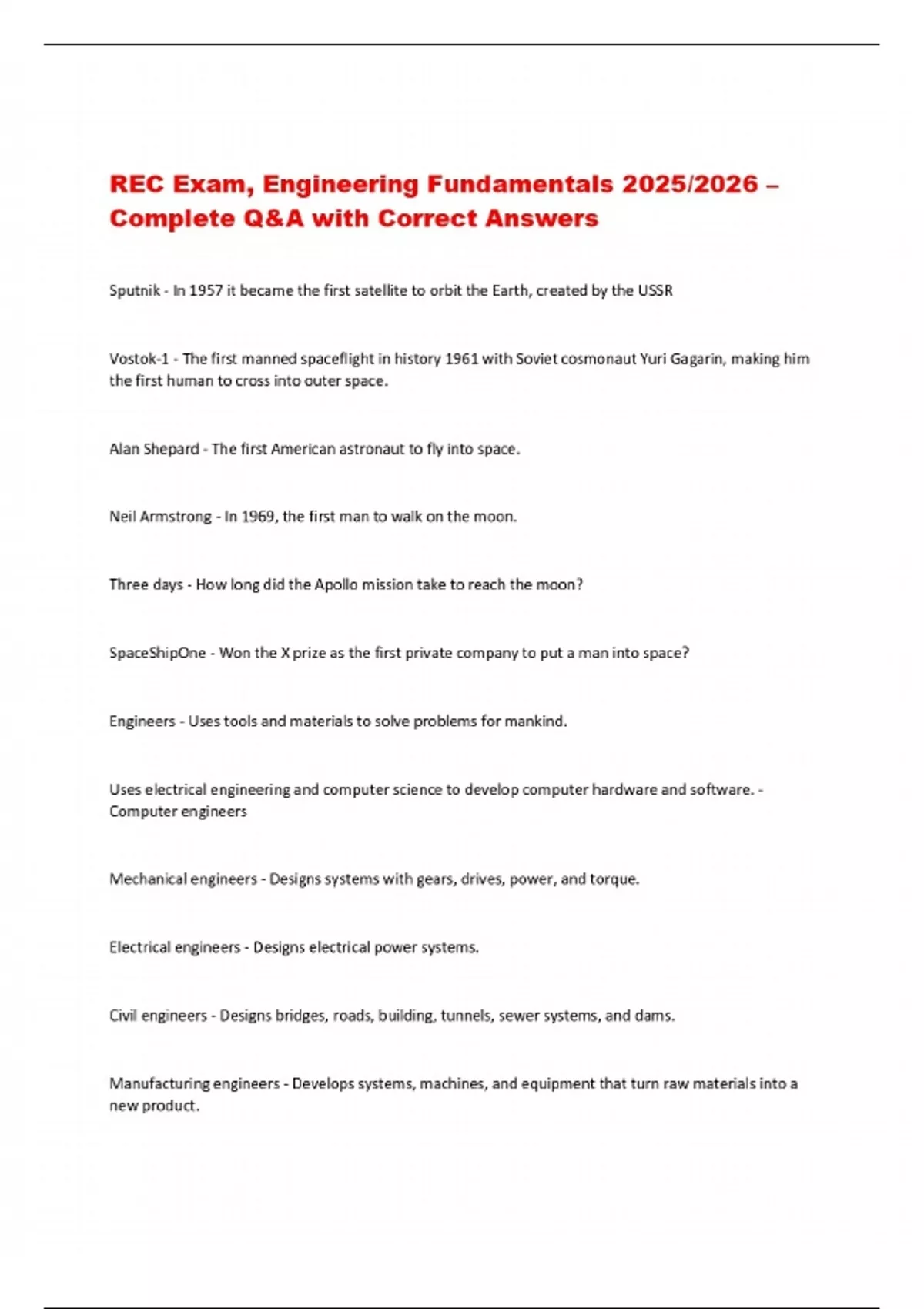 REC Exam, Engineering Fundamentals 2025/2026 – Complete Q&A with Correct Answers