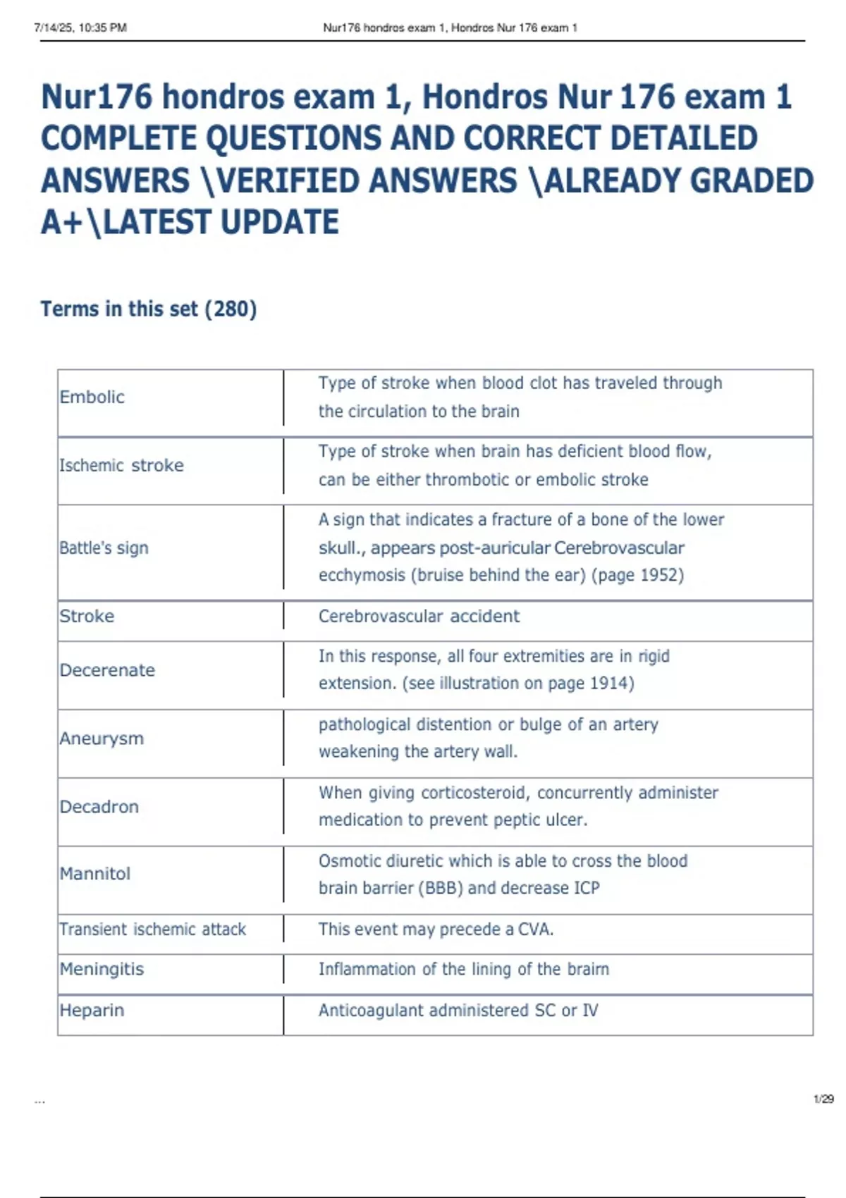 , 7/14/25, 10:35 PM Nur176 hondros exam 1, Hondros Nur 176 exam 1
