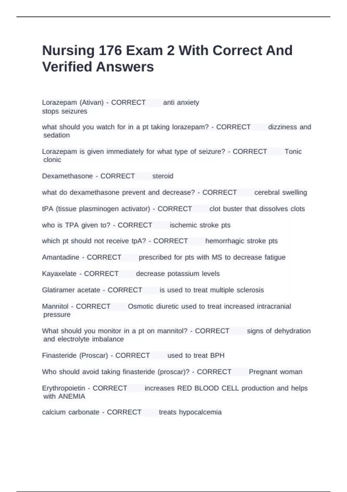 Nursing 176 Exam 2 With Correct And