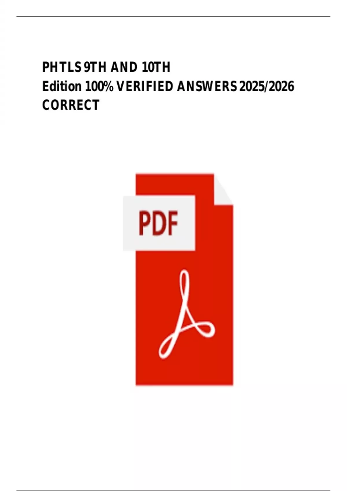 PHTLS 10th Edition 100% VERIFIED ANSWERS EXAMs