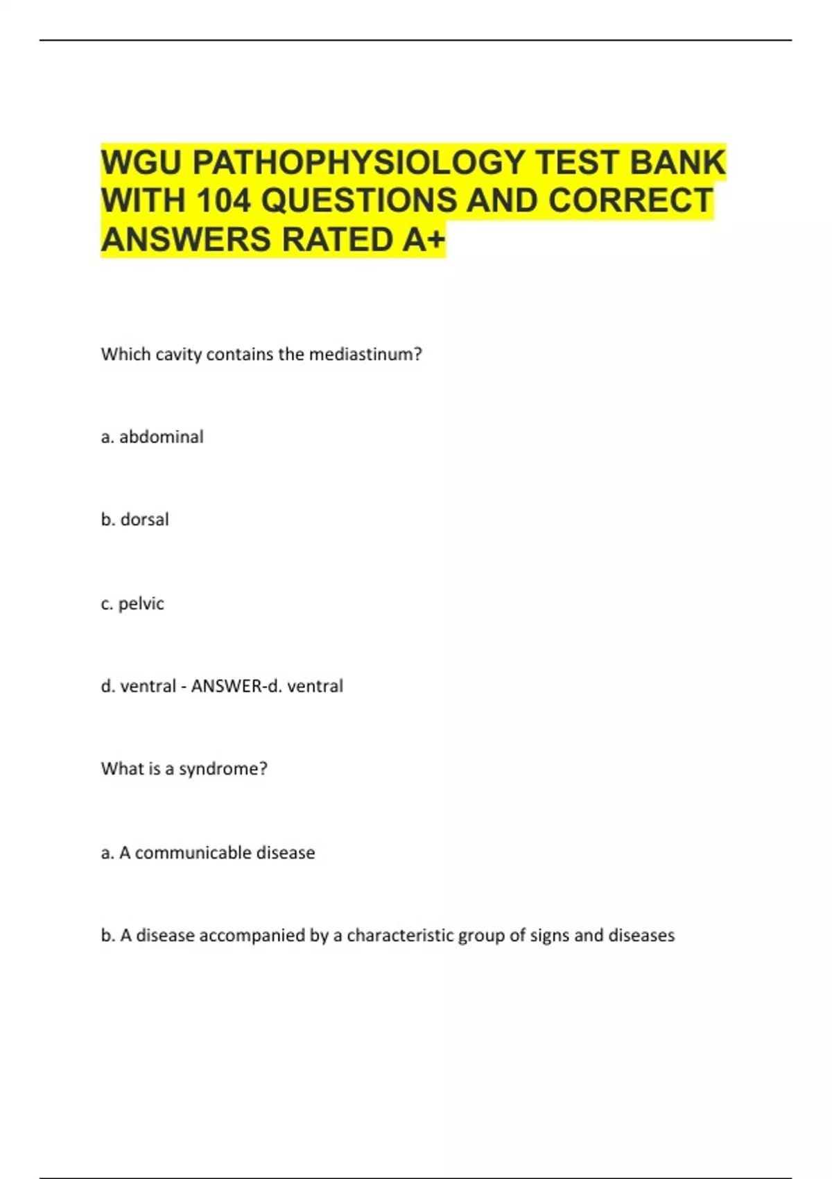 WGU PATHOPHYSIOLOGY TEST BANK WITH 104 QUESTIONS AND CORRECT ANSWERS RATED A+