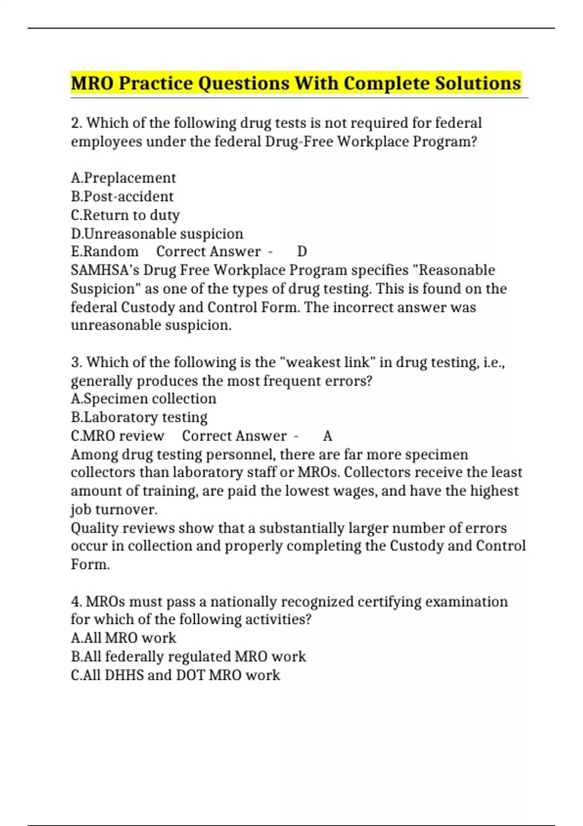 A. All MRO work - Incorrect: includes non-federally regulated drug