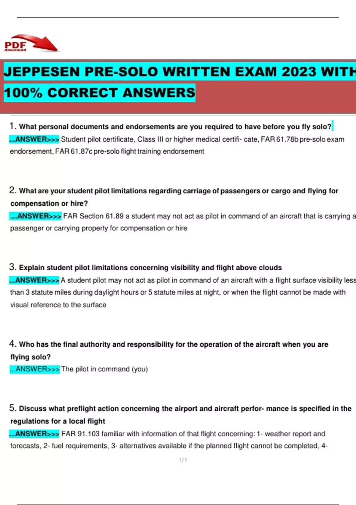 1. What personal documents and endorsements are you required to have before you fly solo?
