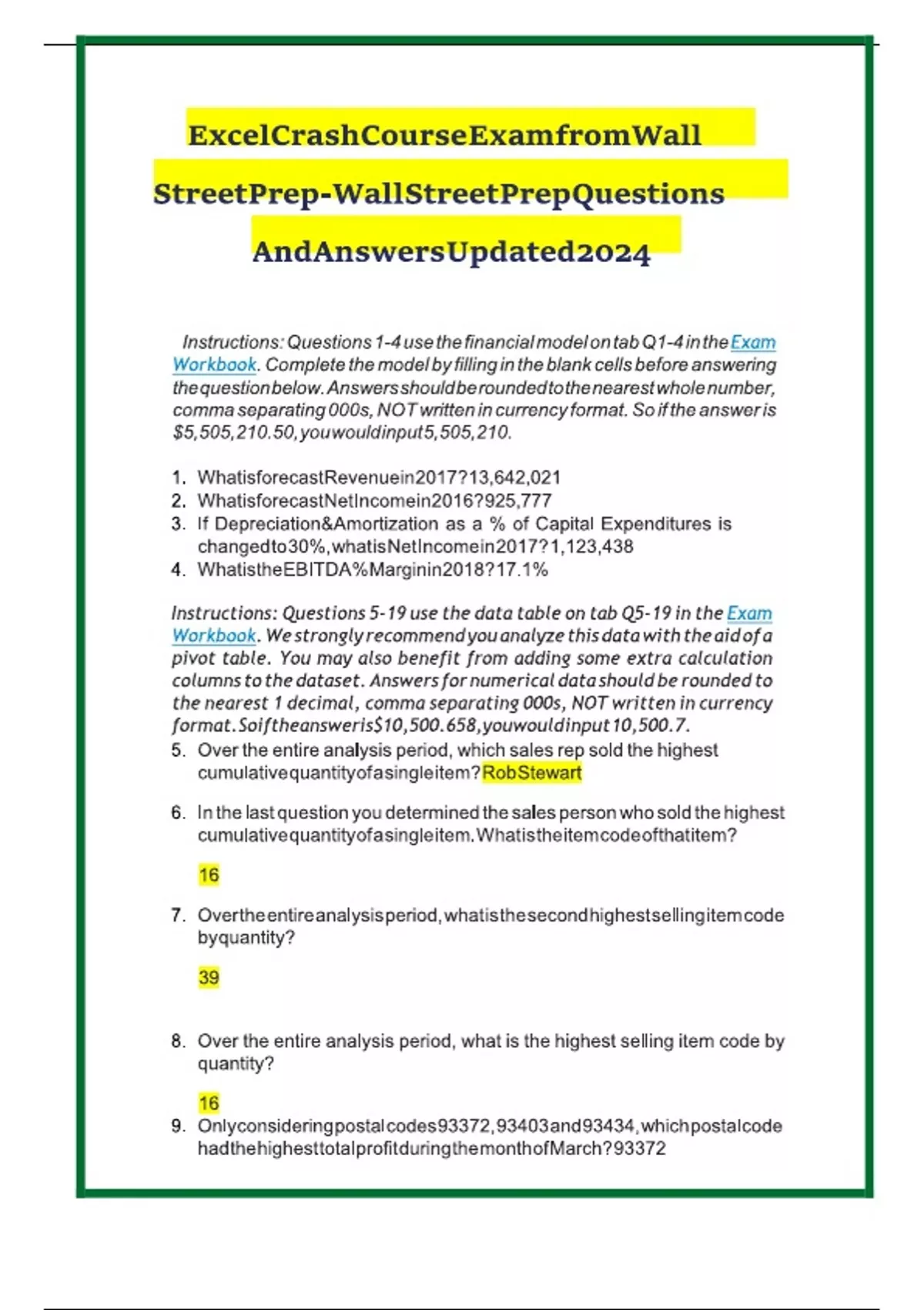 EXCEL CRASH COURSE EXAM 2024 LATEST VERSION FROM WALL STREET QUESTIONS AND 100% CORRECT ANSWERS (BRAND NEW!!)/WSP EXCEL CRASH COURSE (EXCELLENT SCORE)