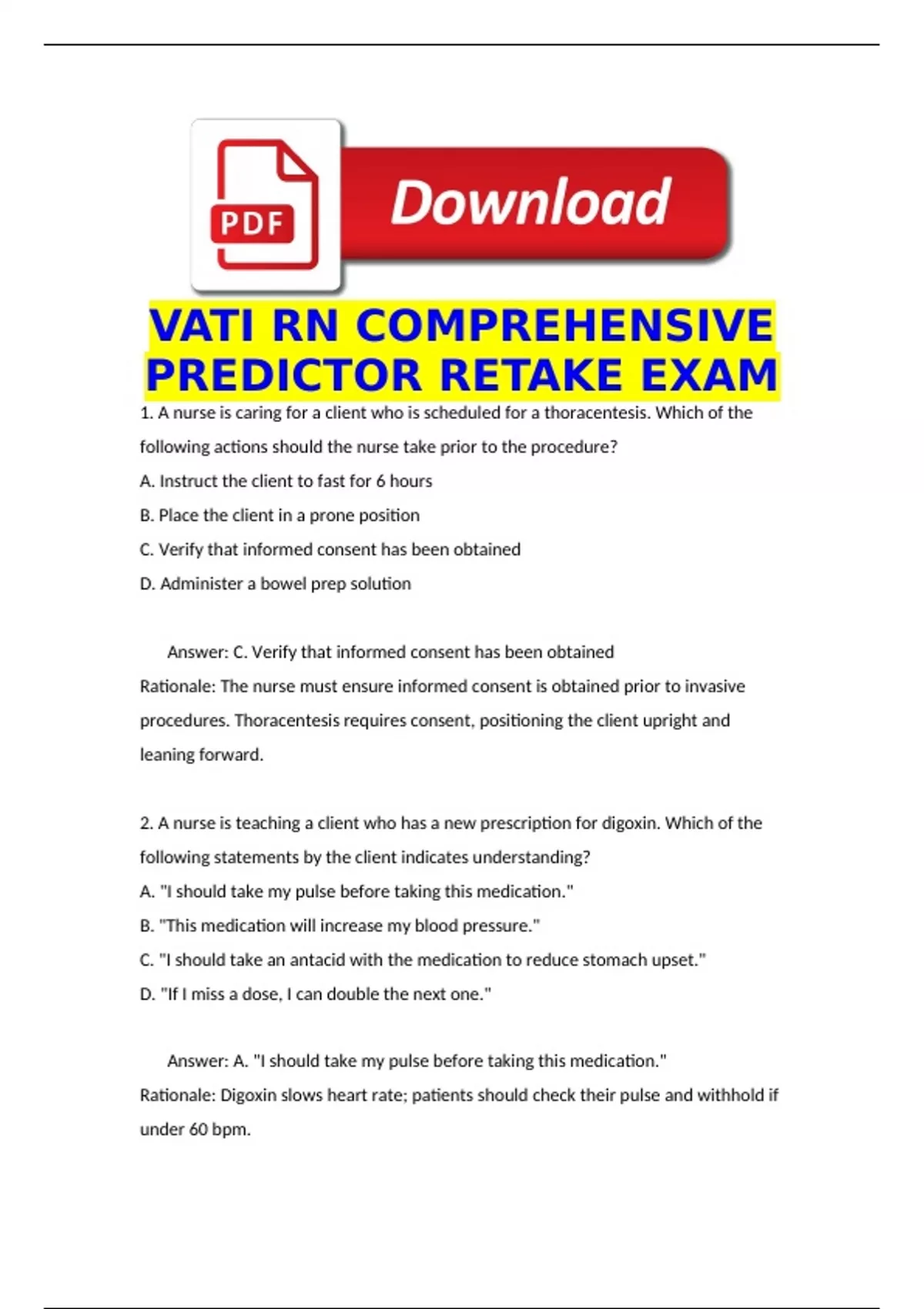 VATI RN COMPREHENSIVE PREDICTOR RETAKE EXAM 2025 |ACTUAL 150 Qs & As| (NGN QUESTIONS INCLUDED) AND RATIONALES/ALREADY GRADED A+|LATEST UPDATE 2025 SPRING