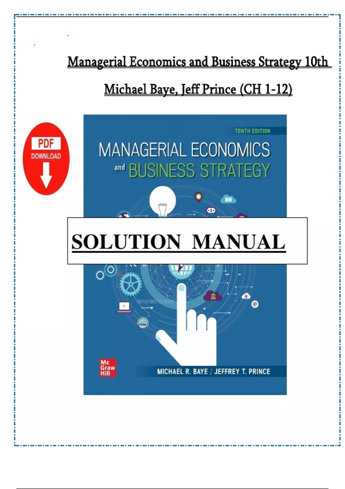 Managerial Economics and Business Strategy 11th Edition by Baye – Solution Manual – All 15 Chapters & Chapter Module Group A & B Covered