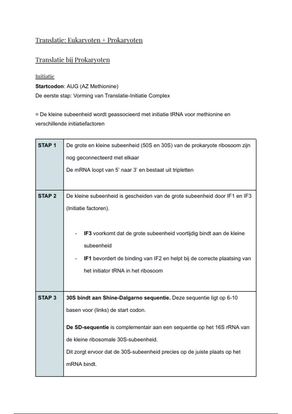 Translatie: Eukaryoten + Prokaryoten