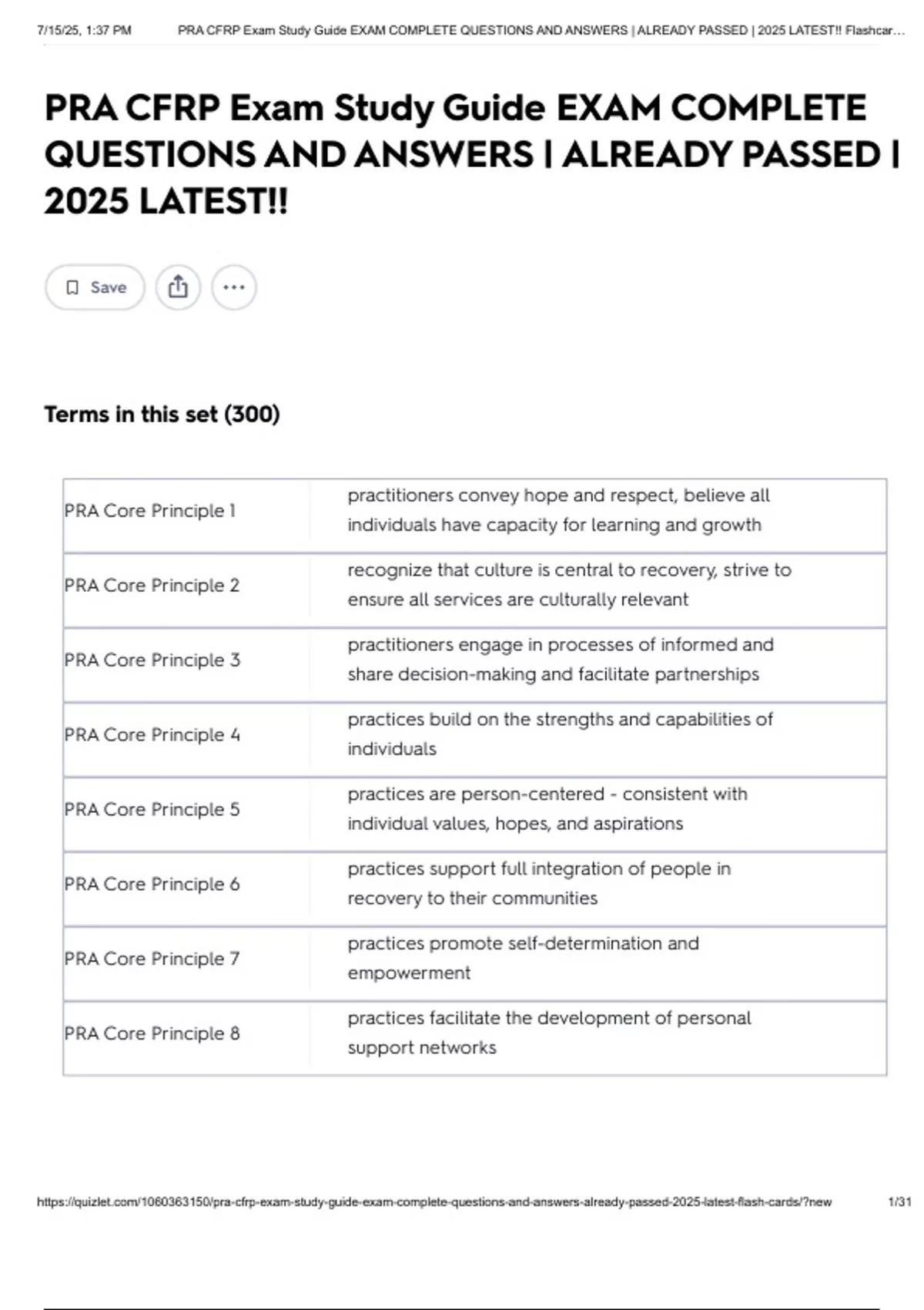 , 7/15/25, 1:37 PM PRA CFRP Exam Study Guide EXAM COMPLETE QUESTIONS AND ANSWERS | ALREADY PASSED | 2025 LATEST!! Flashcar…