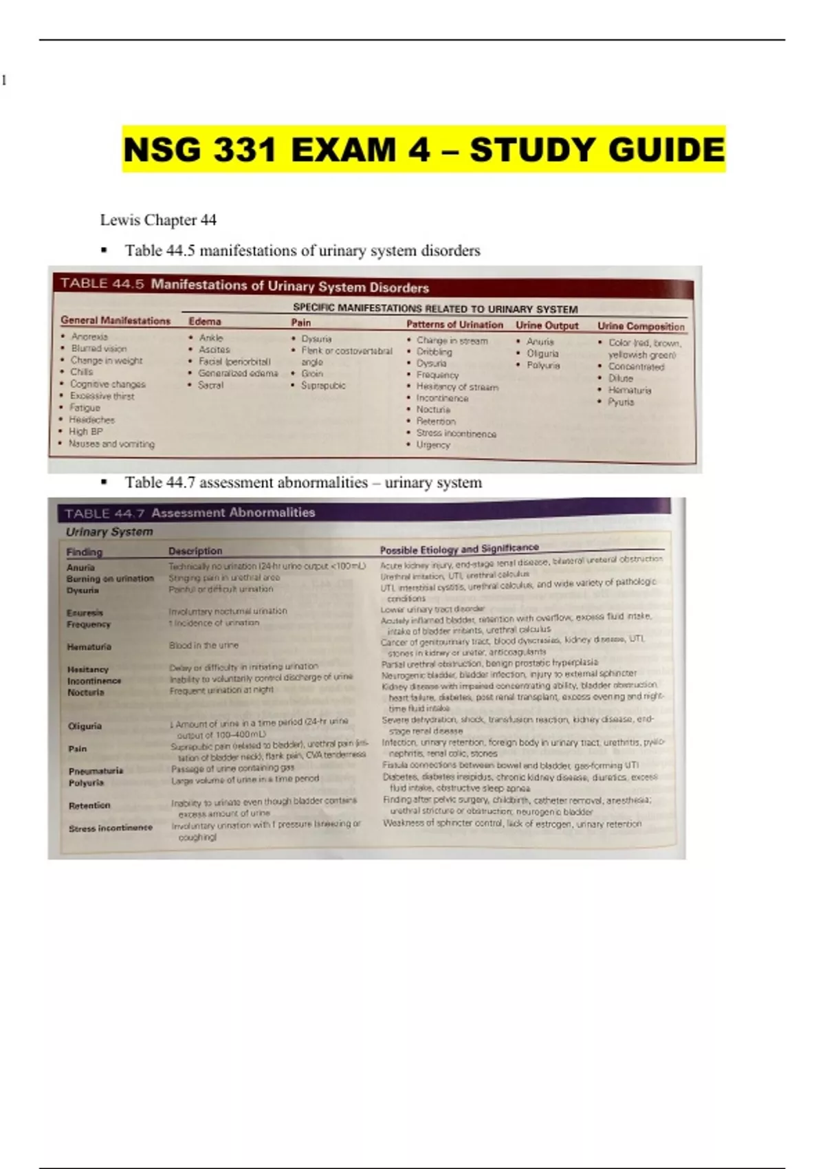▪ Table 44.9, 44.10, 44.11 diagnostics of urinary system