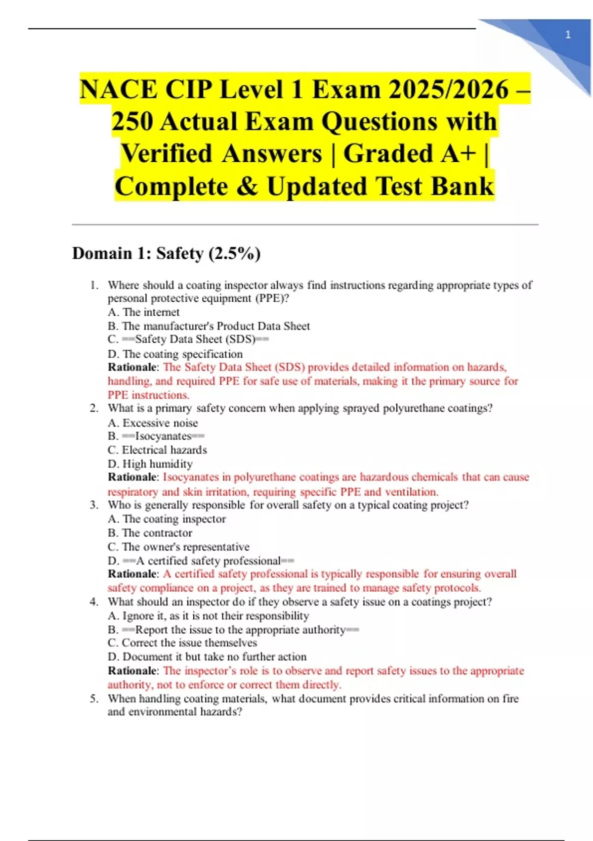 NACE CIP Level 1 Exam 2025/2026 – 250 Actual Exam Questions with Verified Answers | Graded A+ | Complete & Updated Test Bank