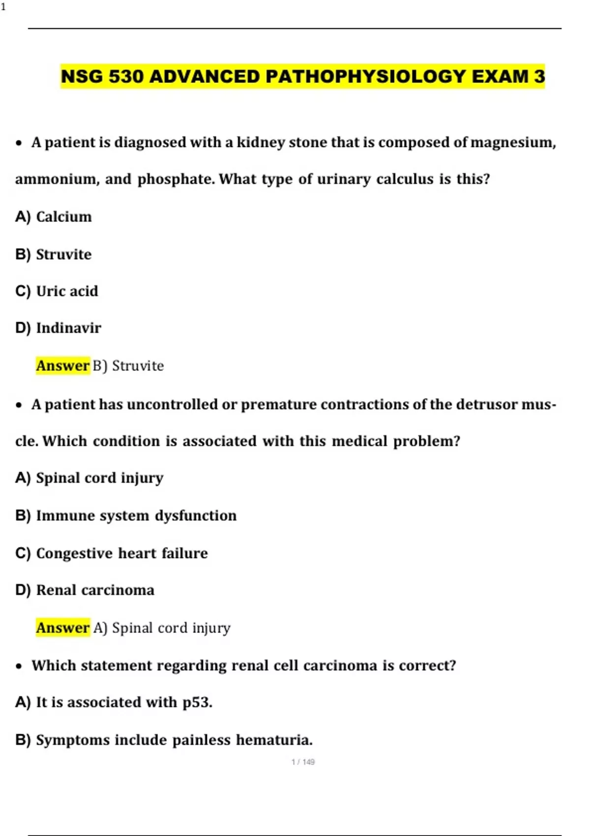 NSG 530 ADVANCED PATHOPHYSIOLOGY EXAM 3