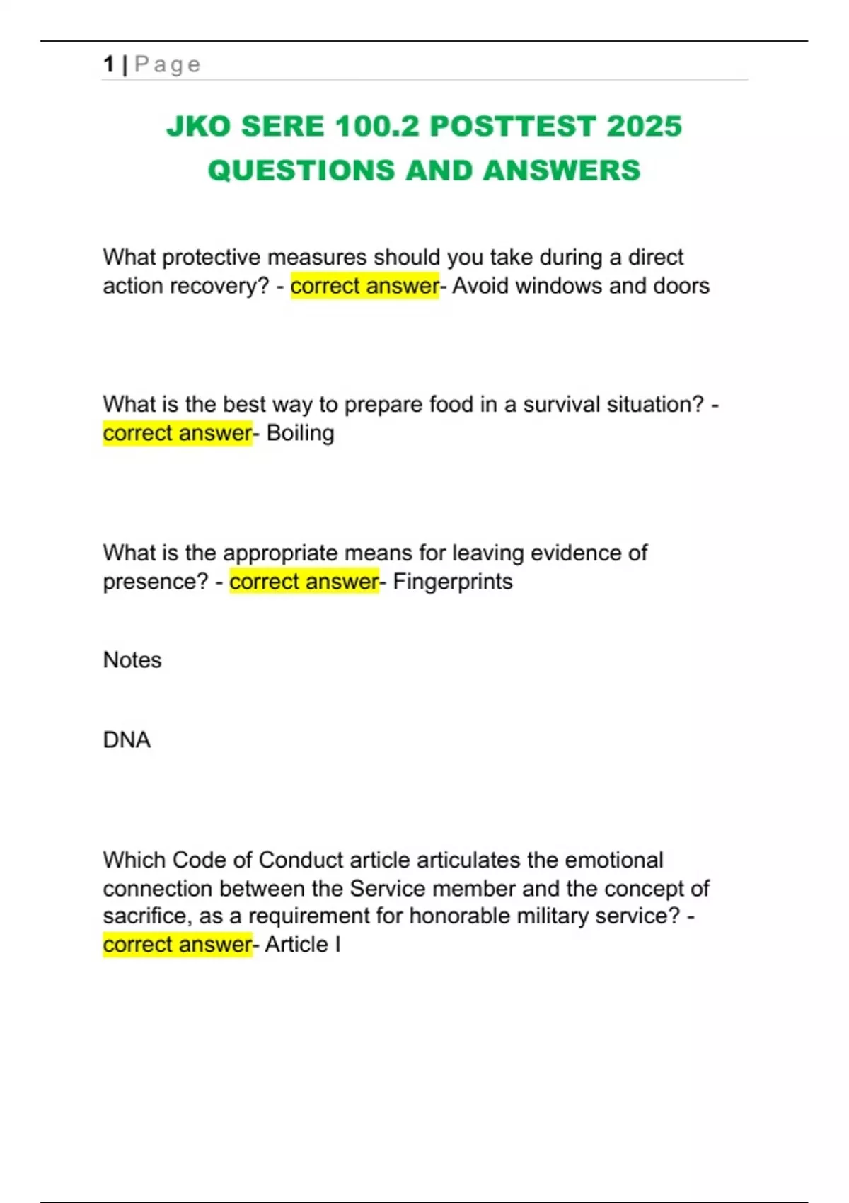 JKO SERE 100.2 POSTTEST 2025 QUESTIONS AND ANSWERS