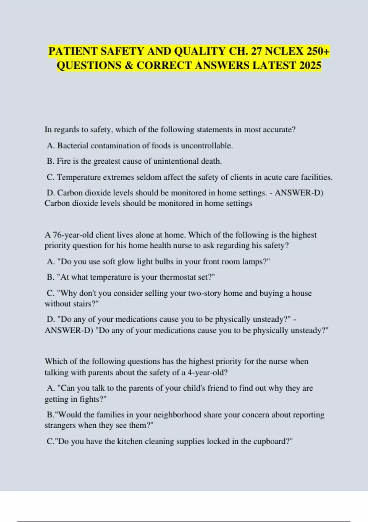 QUESTIONS & CORRECT ANSWERS LATEST 2025