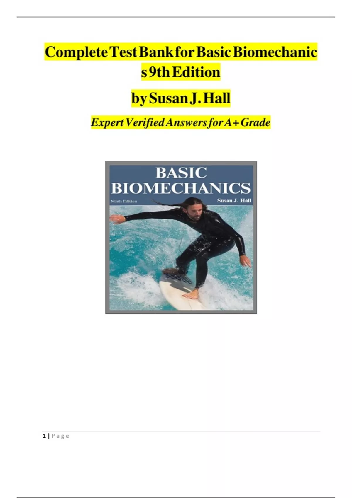 This comprehensive Test Bank for Basic Biomechanics, 9th Edition by Susan J. Hall is the ultimate study resource for students and instructors alike. Packed with expertly verified answers, this test bank covers all chapters of the textbook, providing a wide range of multiple-choice questions, true/false statements, and short-answer problems designed to reinforce key biomechanics concepts. Features: Chapter-by-Chapter Coverage – Includes questions from all chapters, ensuring thorough preparation for exams. Verified Answers – Accurate and reliable solutions to help you achieve A+ grades. Diverse Question Types – Multiple-choice, true/false, and short-answer questions to test your understanding. Perfect for Exam Prep – Ideal for students reviewing key concepts and instructors creating quizzes and tests. Instant Accessibility – Easy-to-navigate PDF format for quick study sessions. Why Buy This Test Bank? Whether you're a student aiming for top marks or an instructor looking for ready-made assessment materials, this test bank is an invaluable resource. Save time and boost your understanding of biomechanical principles with this expertly crafted study aid! Get Yours Today and Ace Your Biomechanics Course!