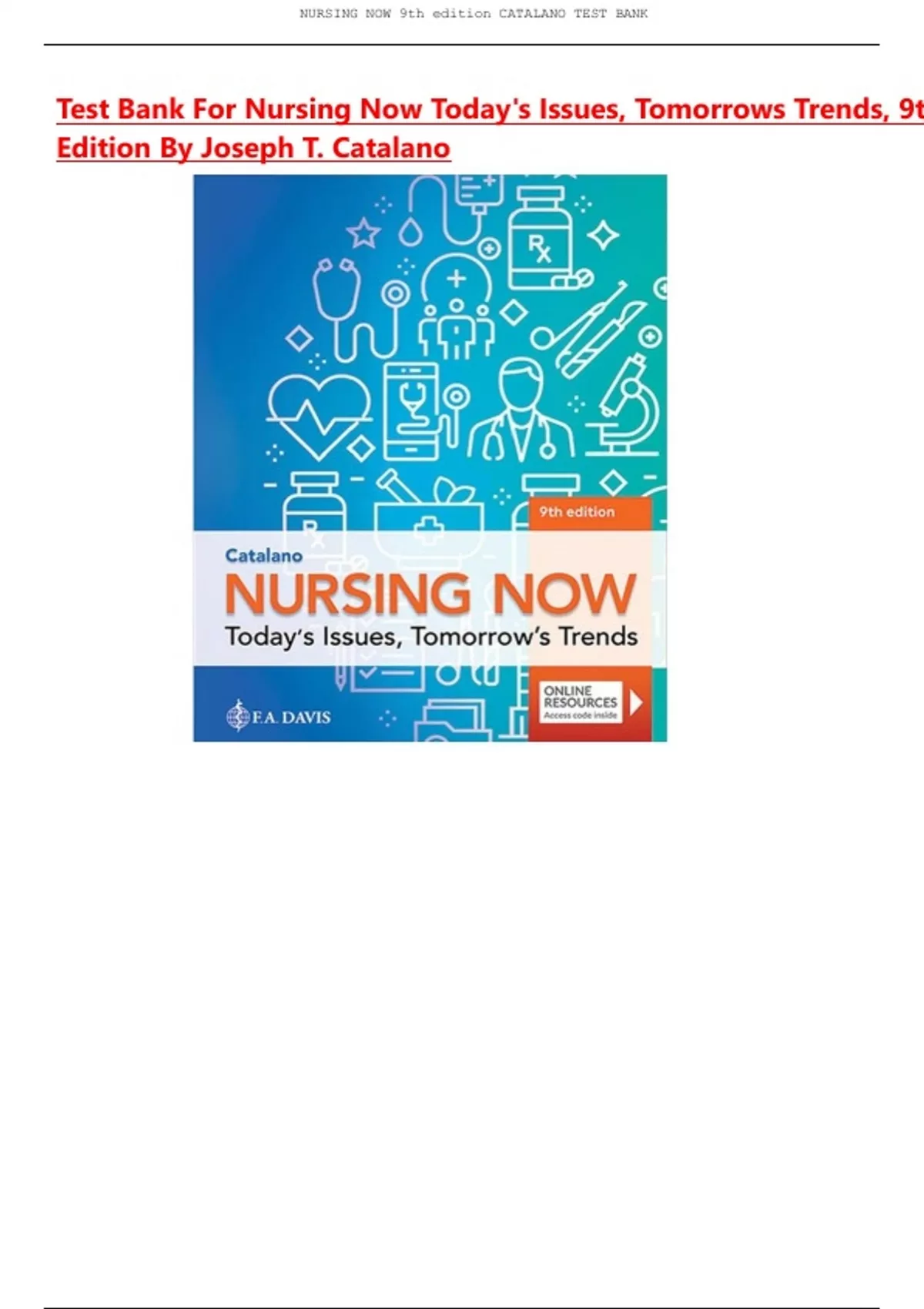 Test Bank for Nursing Now Today's Issues, Tomorrows Trends, 9th Edition by Joseph T. Catalano All Chapters 1-30 LATEST