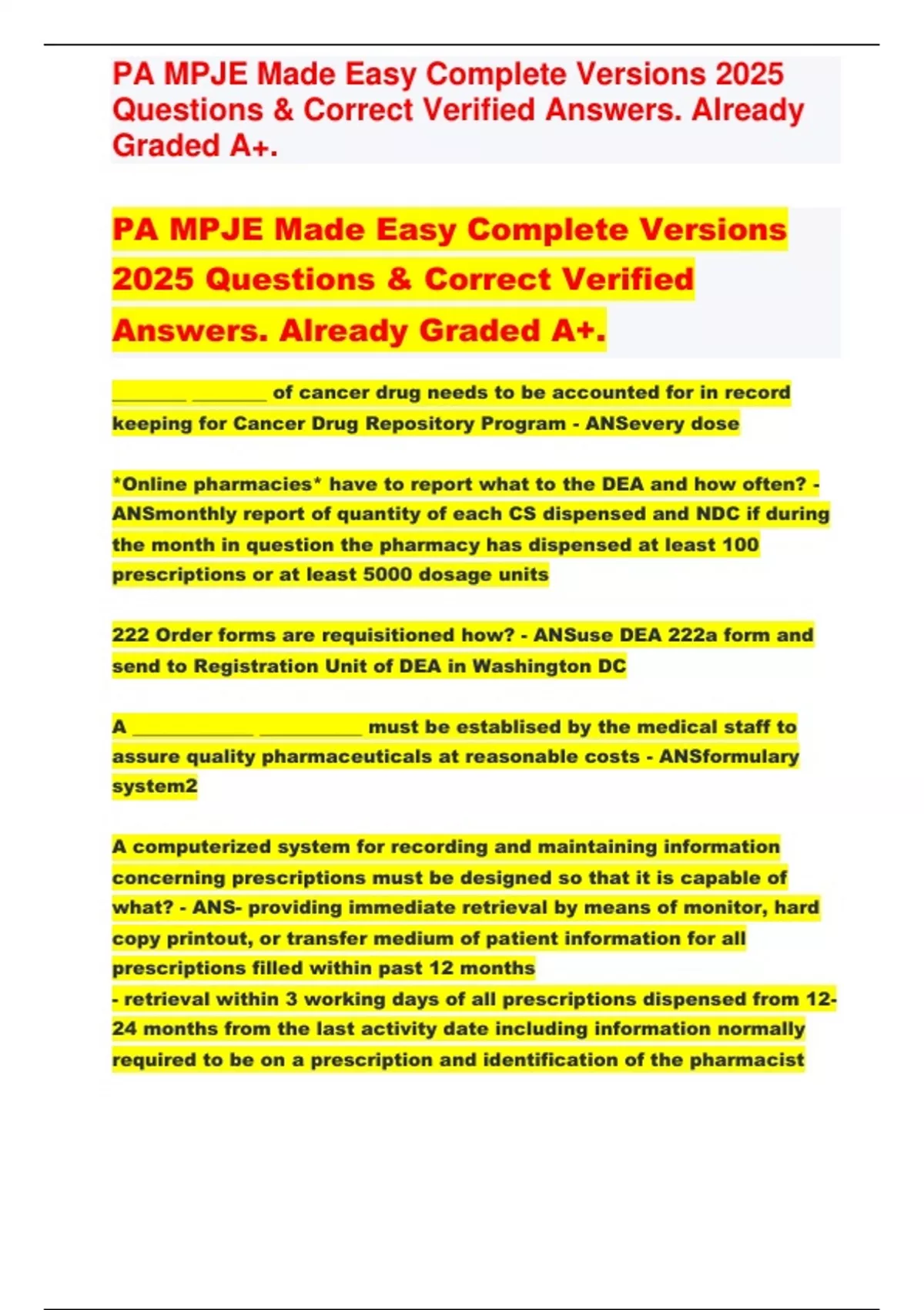 PA MPJE Made Easy Complete Versions 2025 Questions & Correct Verified Answers. Already Graded