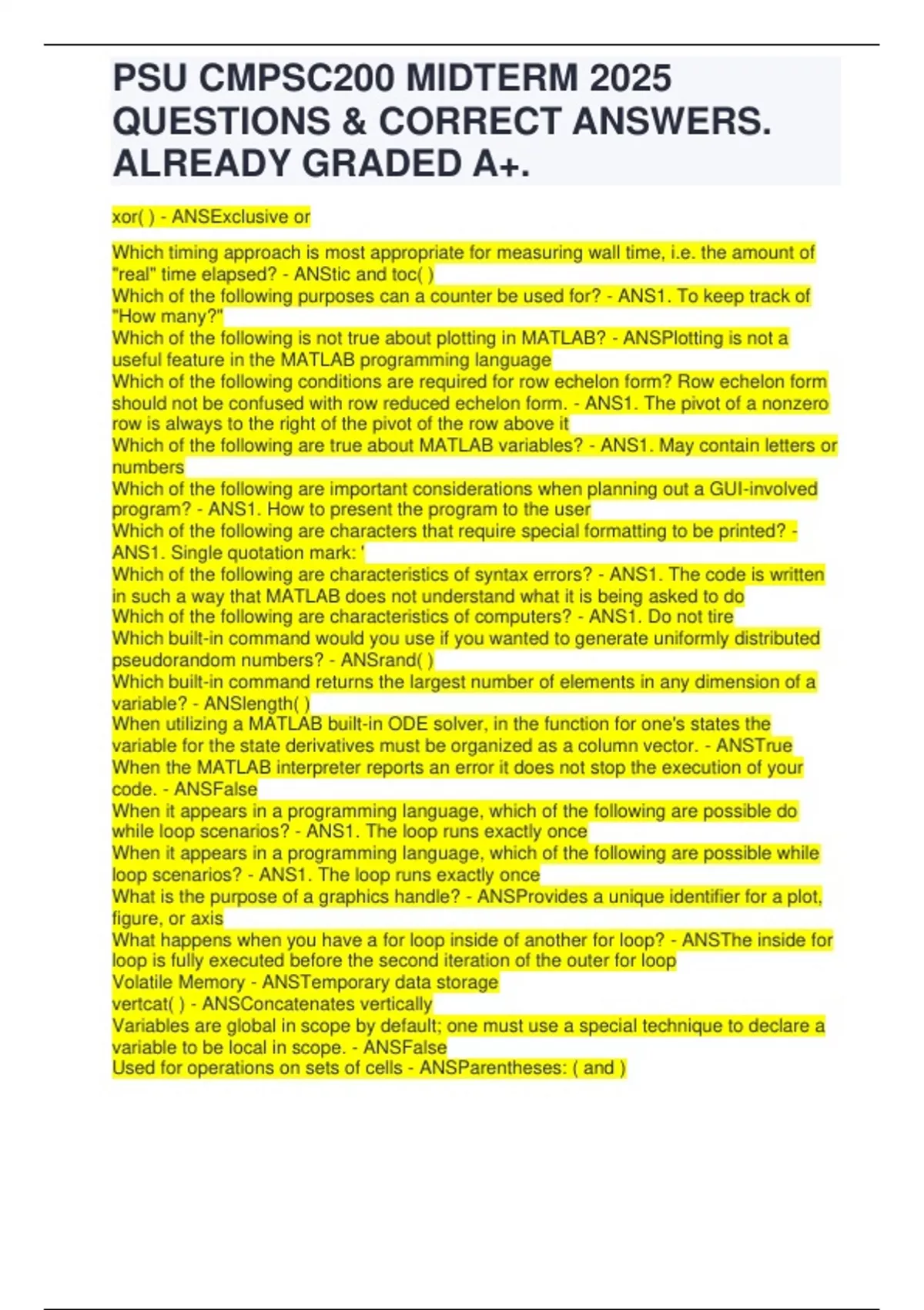 PSU CMPSC200 MIDTERM 22025 QUESTIONS & CORRECT ANSWERS. ALREADY GRADED A+..pdf