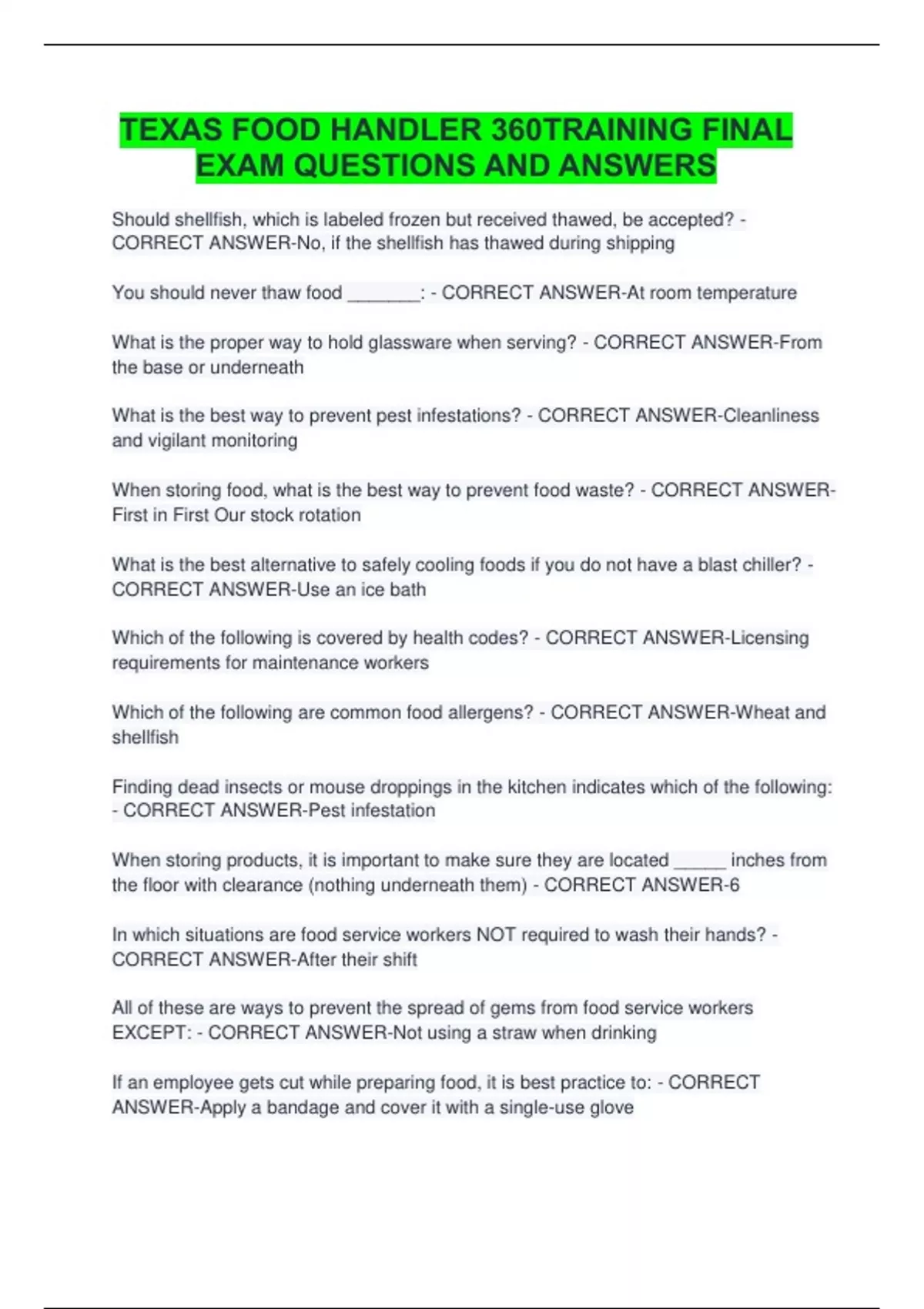TEXAS FOOD HANDLER 360TRAINING FINAL