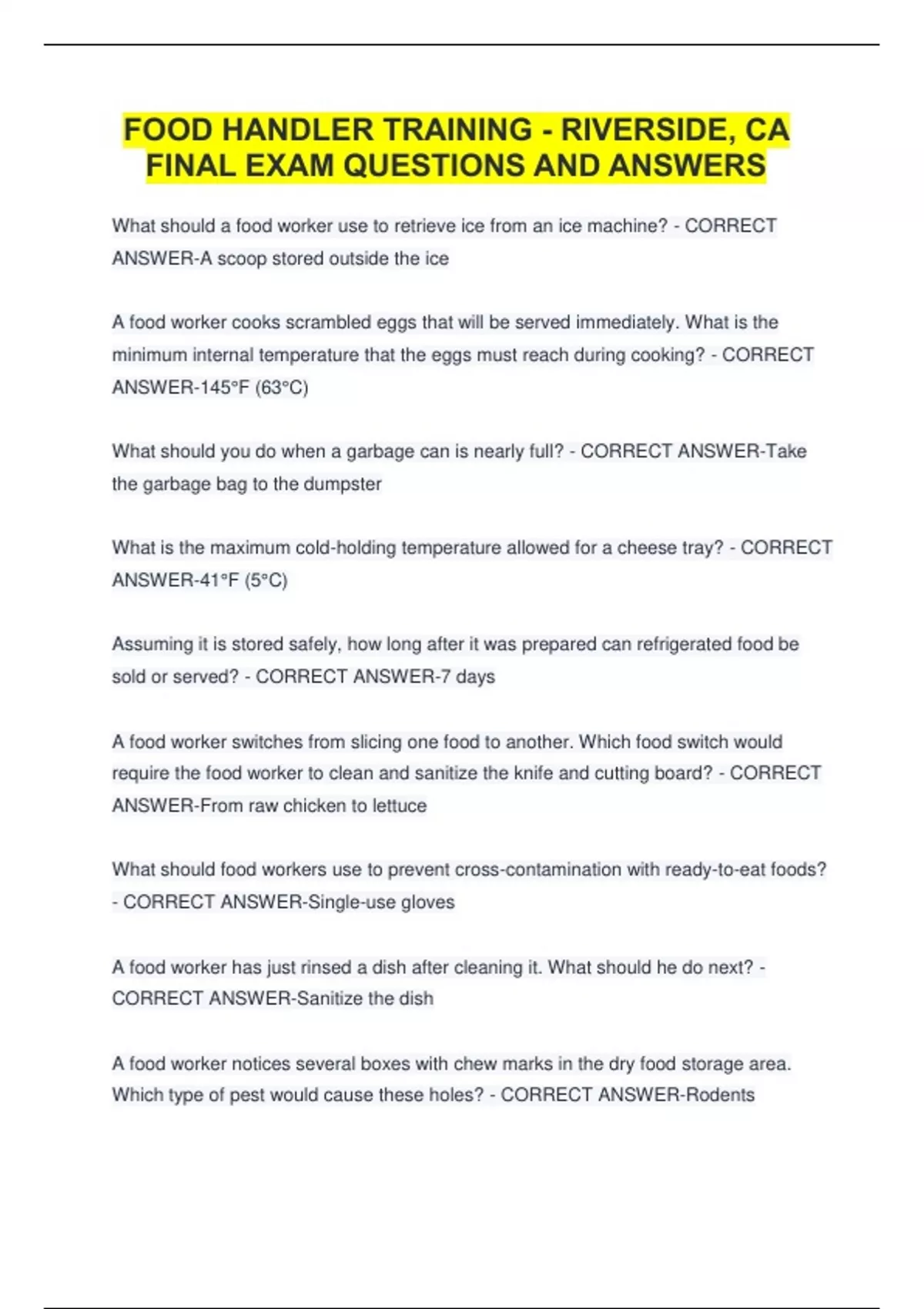 sandwiches? - CORRECT ANSWER-Wear gloves while she prepares the sandwiches