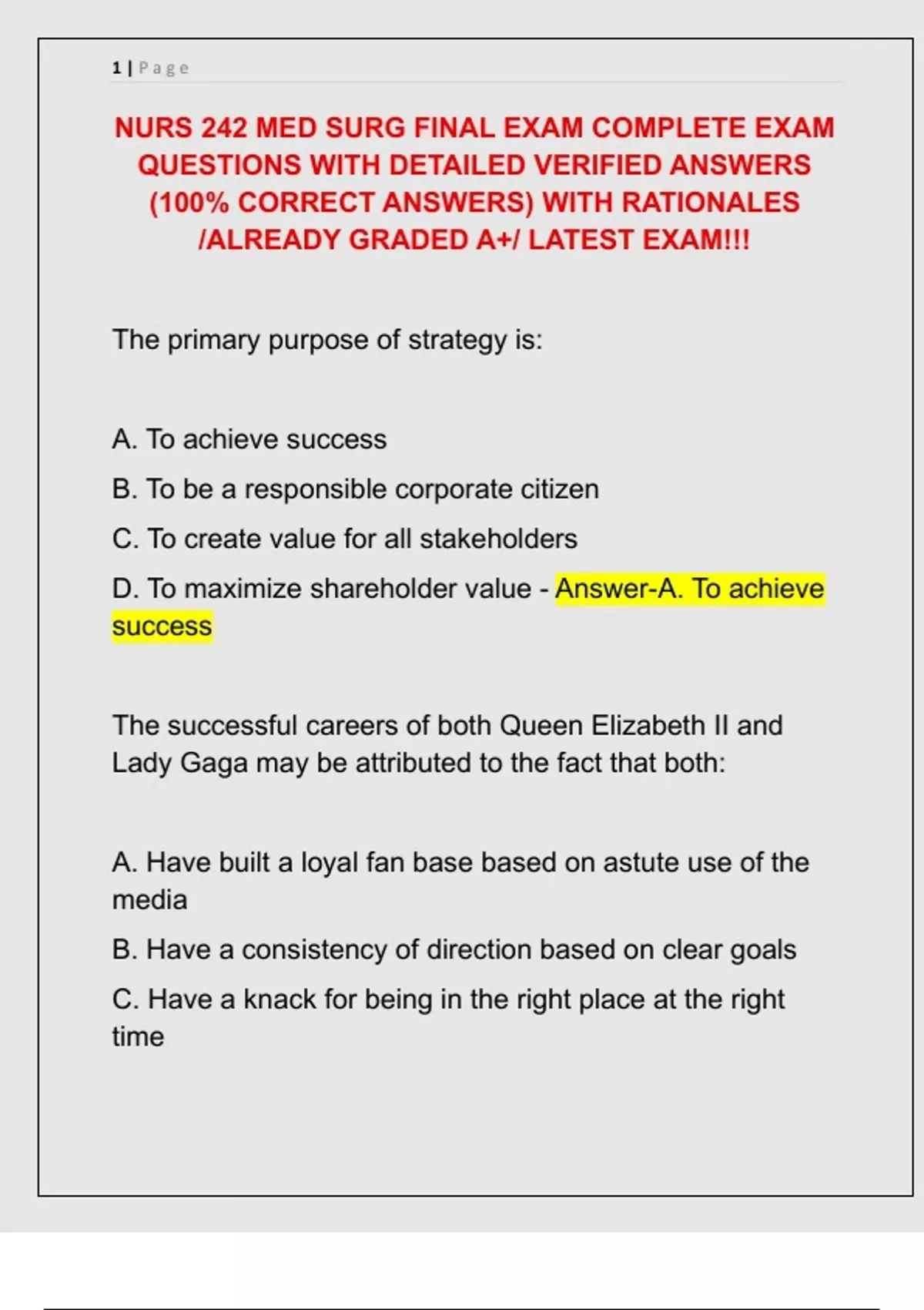 (100% CORRECT ANSWERS) WITH RATIONALES