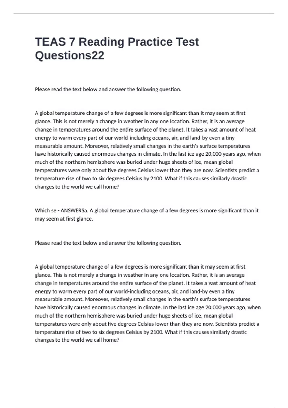 Which se - ANSWERSa. A global temperature change of a few degrees is more significant than it