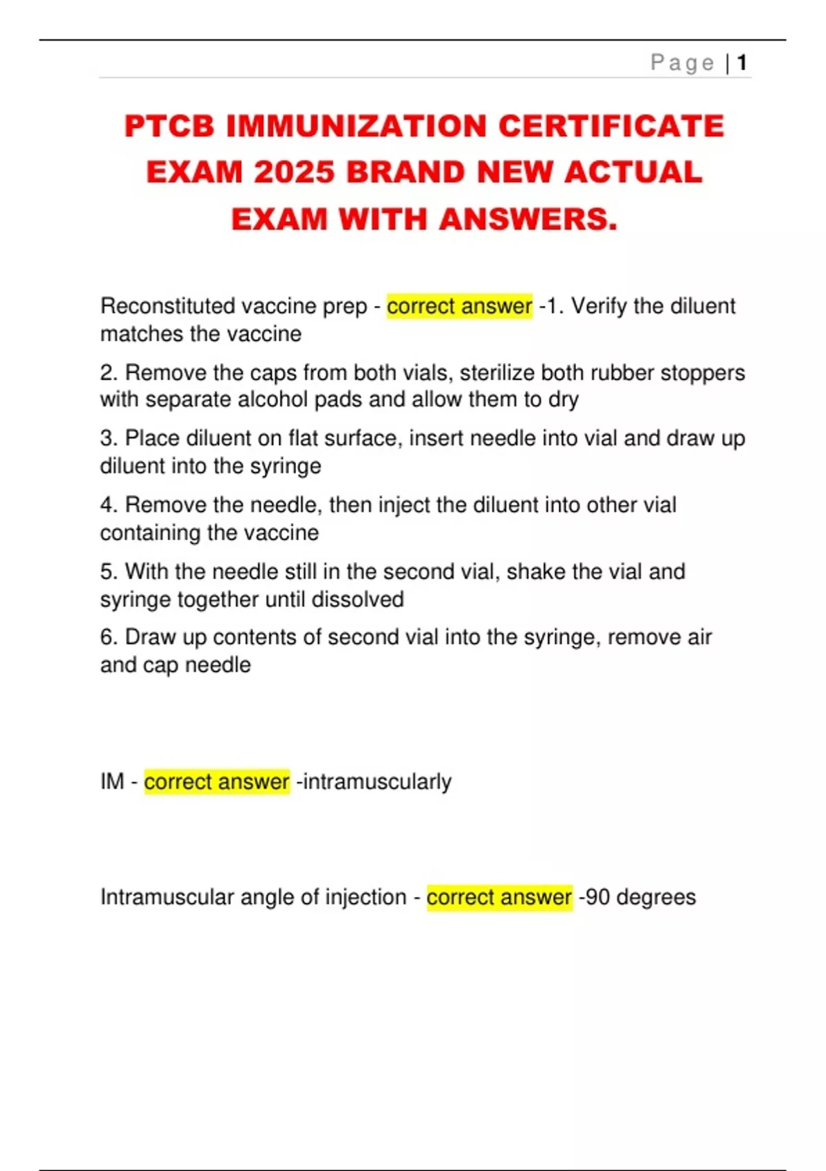 Reconstituted vaccine prep - correct answer -1. Verify the diluent